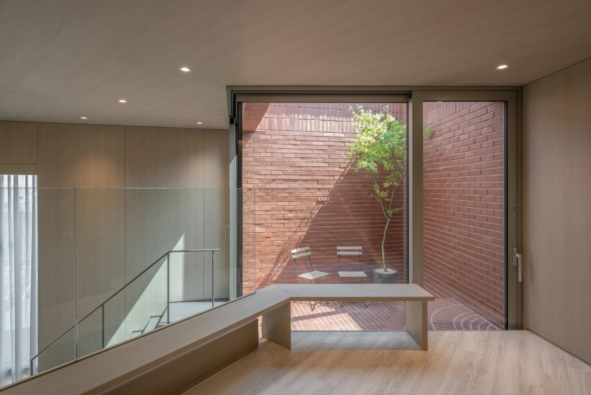 Dù khép kín, căn nhà vẫn đón ánh sáng tự nhiên nhờ khoảng thông tầng nhỏ trên mái. Ảnh: Joel Moritz