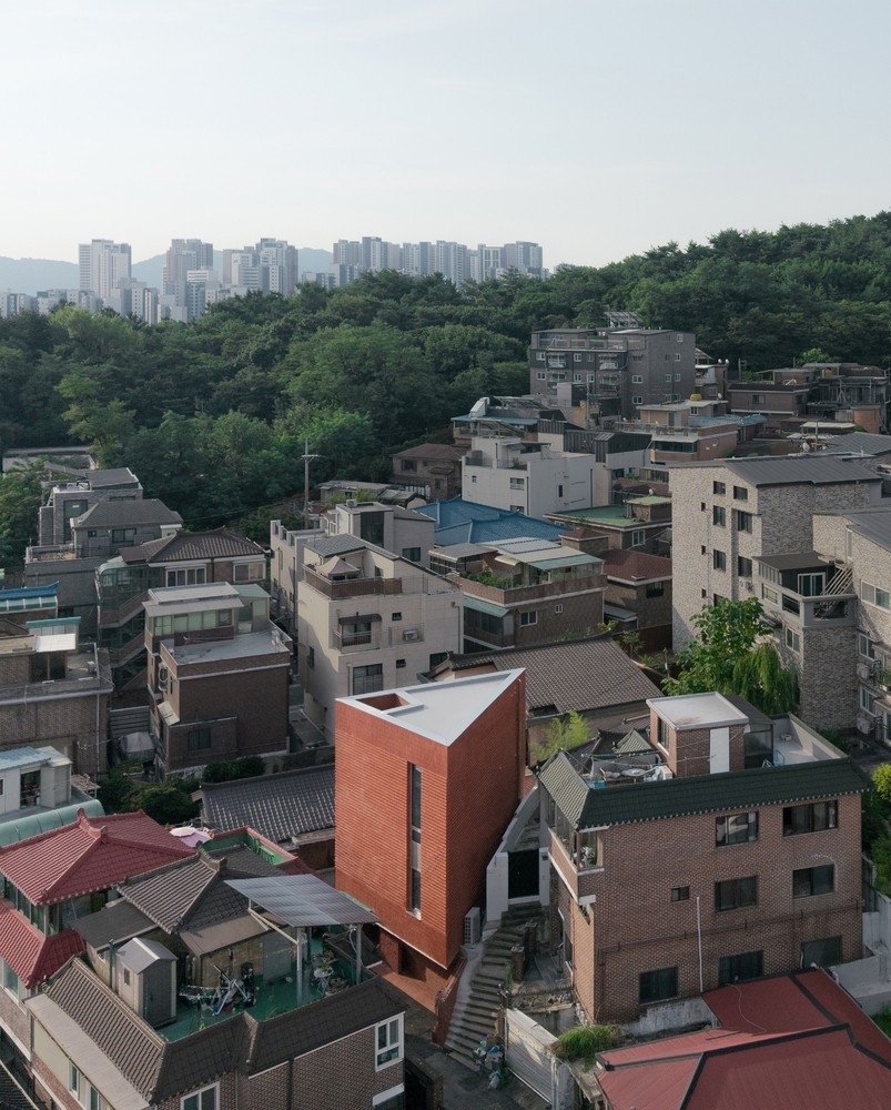 Nằm cuối một con ngõ nhỏ tại Seoul (Hàn Quốc), ngôi nhà được xây trên khu đất hình tam giác, diện tích chưa tới 60 m2. Ảnh: Joel Moritz