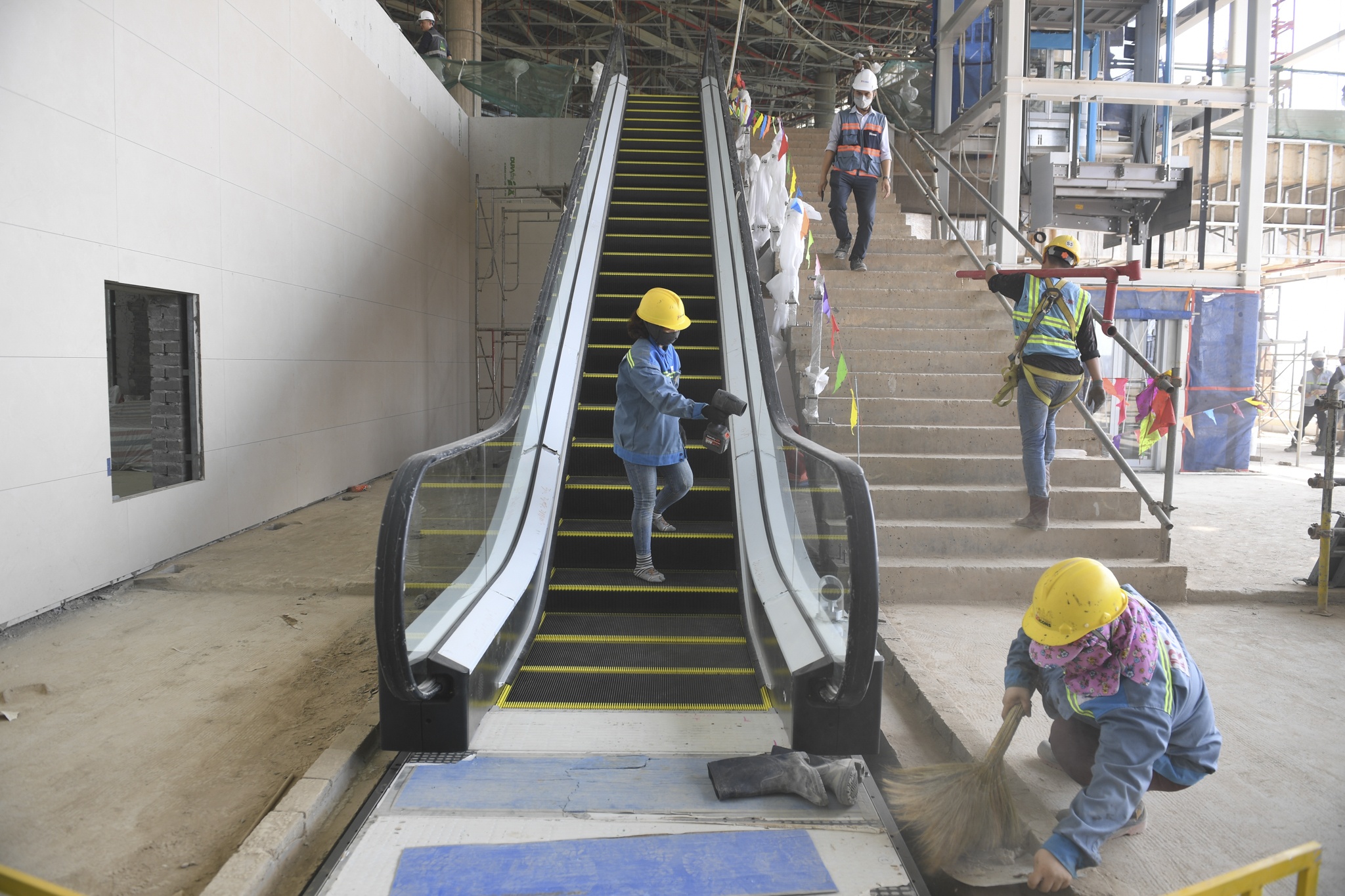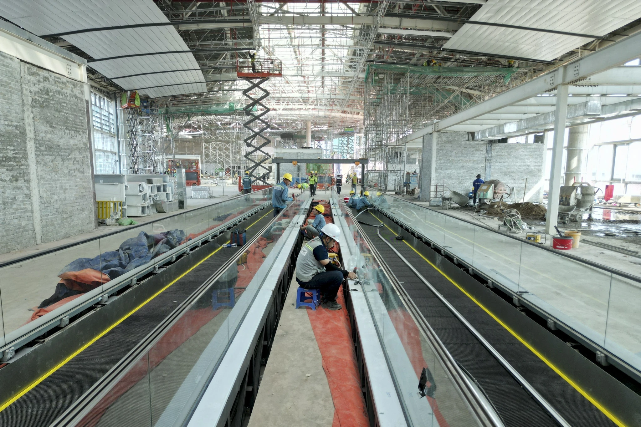Các hạng mục như thang cuốn, thang máy, cầu thang bộ, đường dẫn hành khách... đang được nhà thầu gấp rút thi công và lắp đặt.