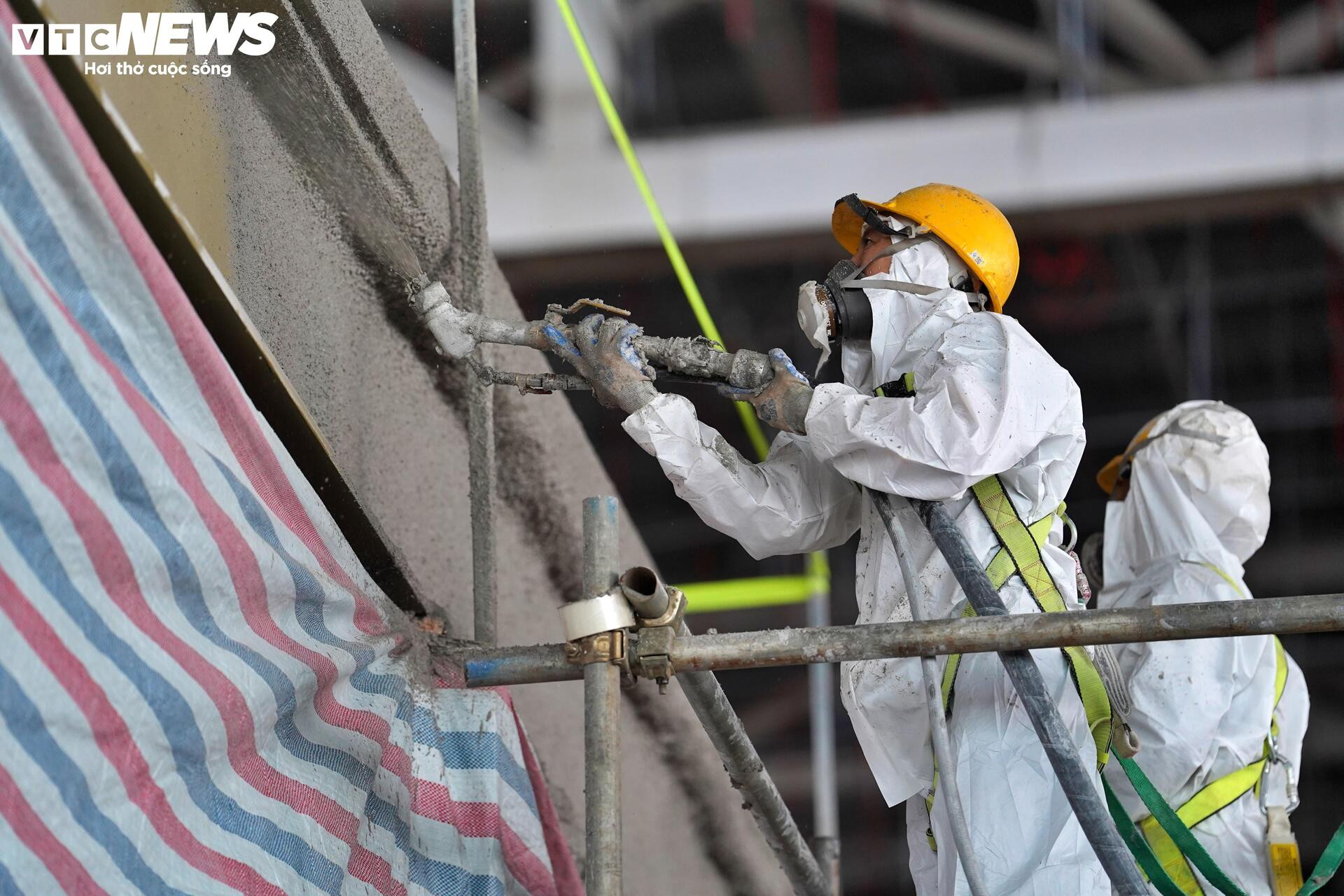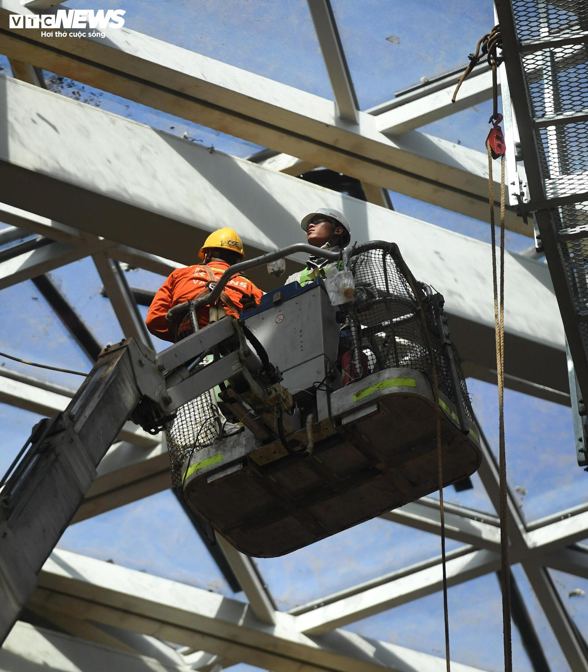 Tại các vị trí lắp kính, công nhân đang hoàn thiện những hạng mục cuối cùng để bảo đảm đạt tiêu chuẩn kỹ thuật hàng không quốc tế.
