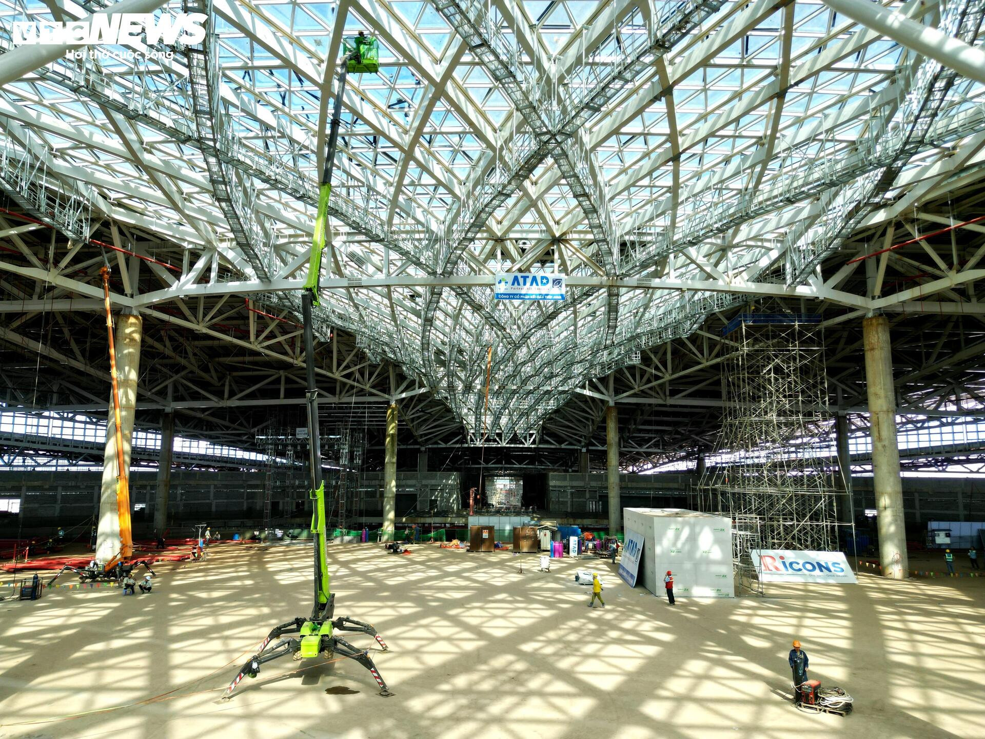 Điểm nhấn của dự án là nhà ga hành khách với kiến trúc cách điệu hình hoa sen đã hiện rõ hình hài khi nhìn từ trên cao. Bên trong nhà ga, các đội thi công đang tập trung lắp đặt ống lồng dẫn khách, thang máy, thang cuốn, hệ thống điện, điều hòa không khí và đấu nối kỹ thuật - những hạng mục quan trọng để đảm bảo vận hành đón khách.