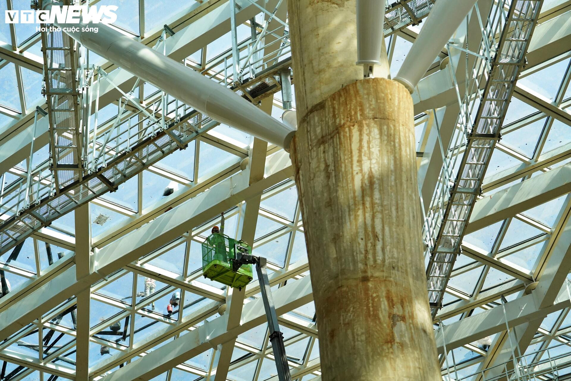 Khu vực mái nhà ga - cấu trúc 5 lớp với vai trò là điểm nhấn kiến trúc của dự án - đã cơ bản hoàn thiện và đang xử lý những công đoạn cuối cùng.