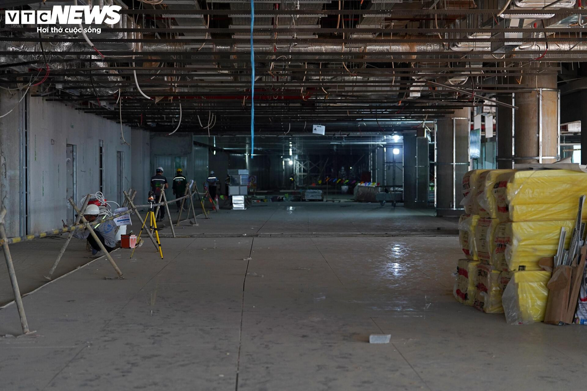 Tầng 1 của nhà ga, nơi bố trí hệ thống băng tải, khu vực cánh và phòng VIP quốc nội, cũng ghi nhận tiến độ tăng tốc với việc lát gạch, lắp đá, hoàn thiện trần và ốp vách.