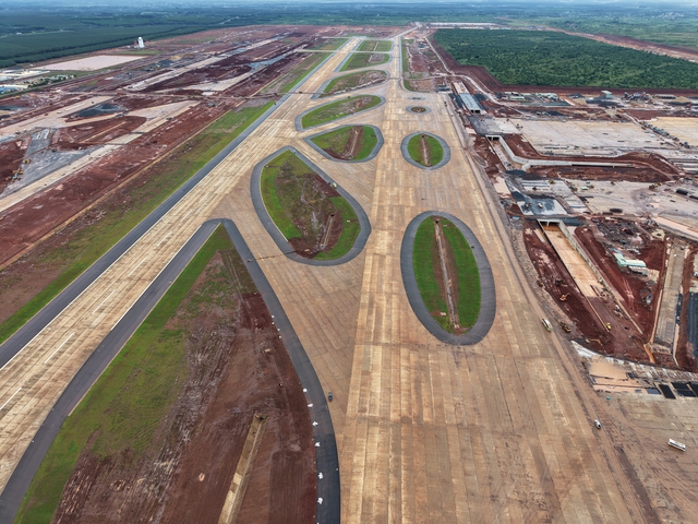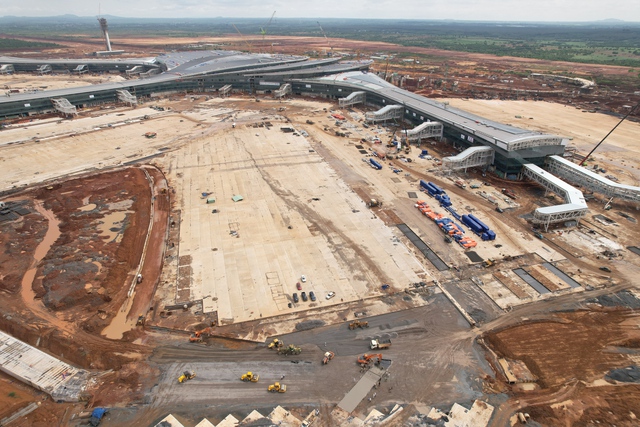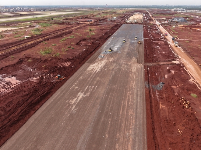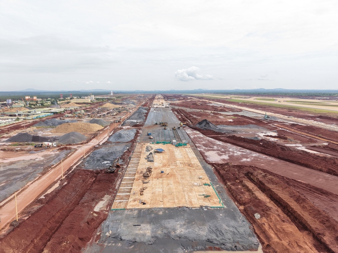 Hiện nay, đường cất hạ cánh thứ nhất, đường lăn, đã hoàn thành xây dựng, lắp đặt trang thiết bị, đã tiến hành bay hiệu chuẩn đủ điều kiện để khai thác. Trong giai đoạn 1 sẽ đầu tư 1 đường cất hạ cánh và 1 nhà ga hành khách cùng các hạng mục phụ trợ đồng bộ với công suất 25 triệu hành khách/năm và 1,2 triệu tấn hàng hóa/năm. (Ảnh: ACV)..