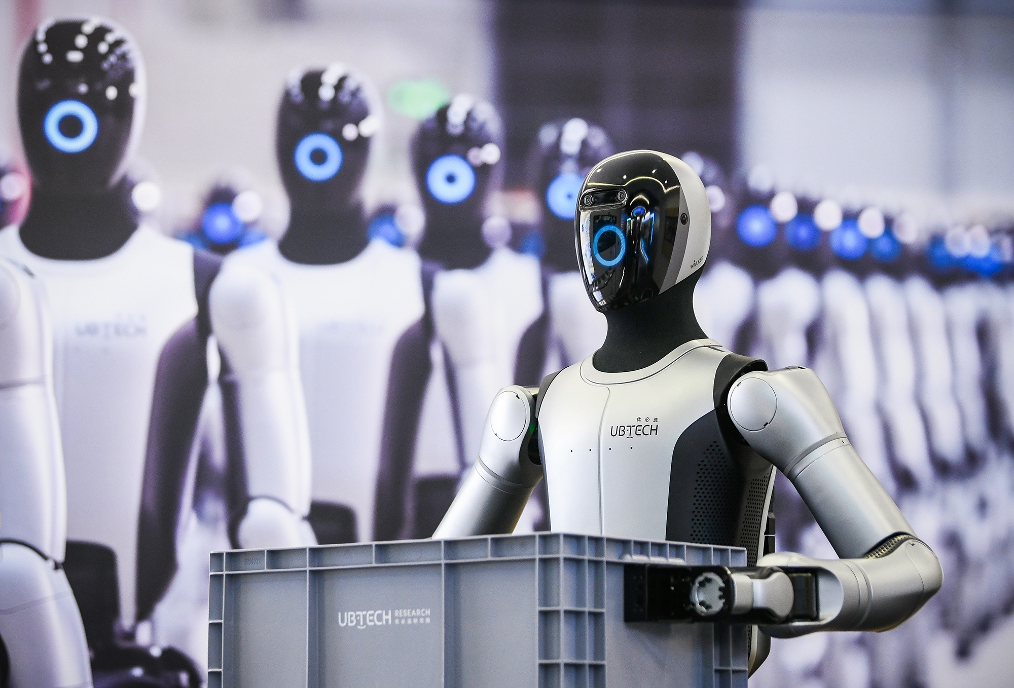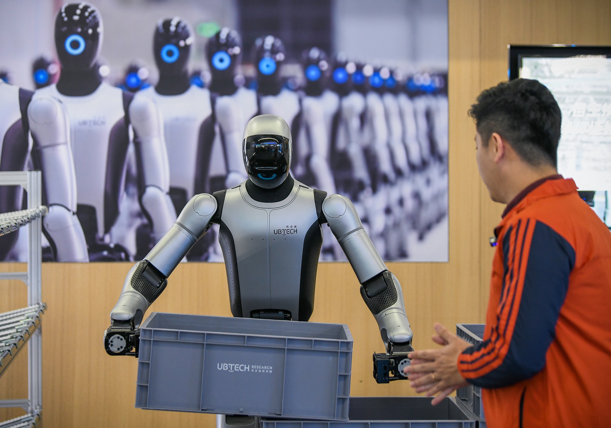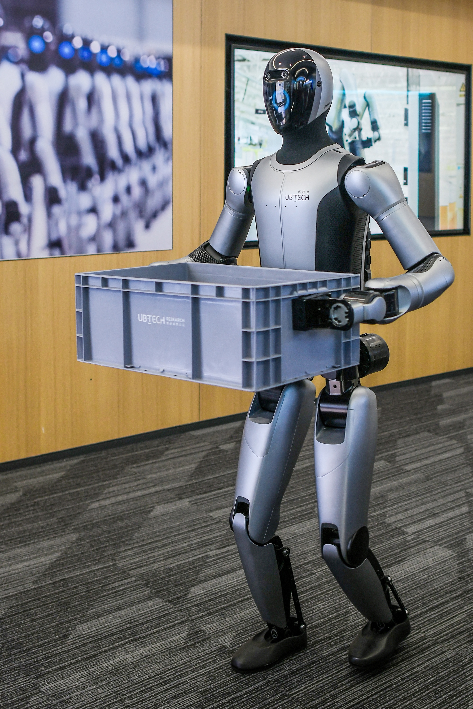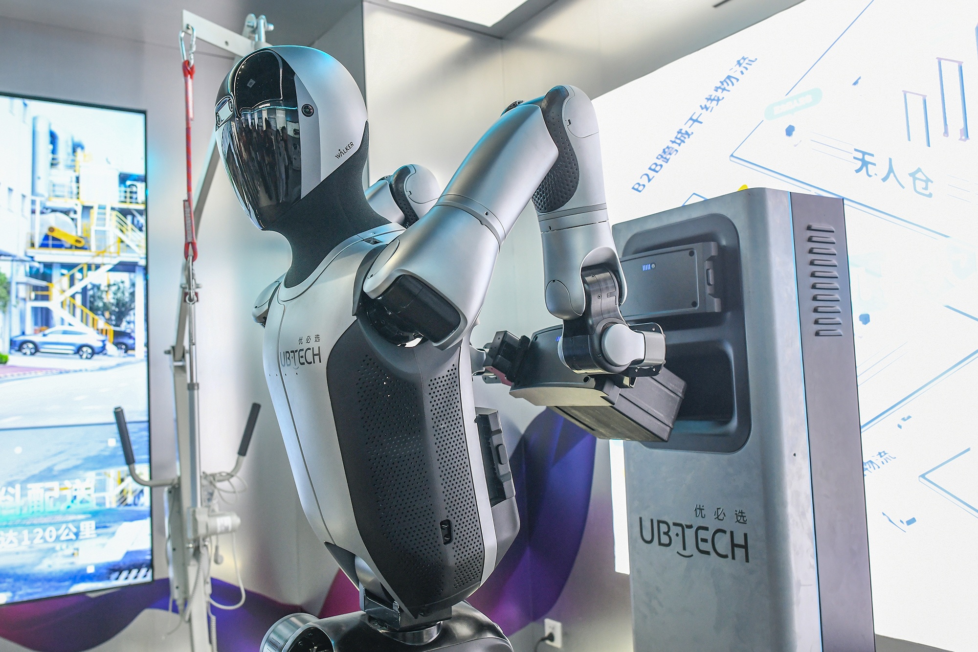 Khu trưng bày trung tâm của UBTECH giới thiệu robot hình người công nghiệp Walker S2 – mẫu robot đã được triển khai tại nhiều nhà xưởng tại Trung Quốc. Nhờ các công nghệ trí tuệ nhân tạo hiện đại như nhận diện thị giác chính xác, định vị – lập bản đồ ngữ nghĩa (VSLAM) và điều khiển chuyển động có khả năng học hỏi, Walker S2 có thể vận chuyển ổn định các thùng vật liệu nặng 15 kg trên dây chuyền sản xuất.
