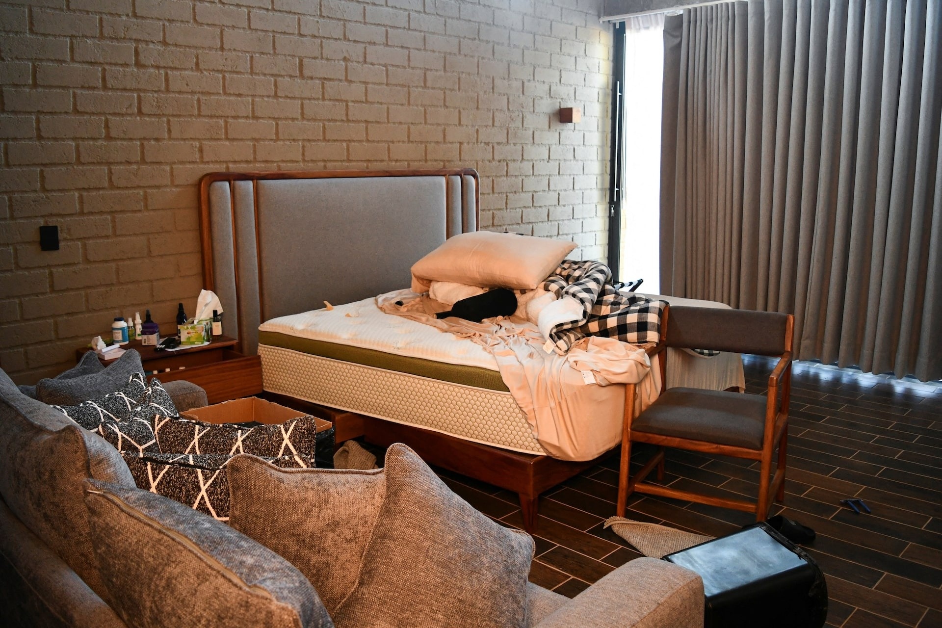 Tổ ấm của El Mencho cao hai tầng, nằm trong khu nghỉ dưỡng khép kín Tapalpa Country Club. Đây là khu nghỉ dưỡng nằm trên đồi, gồm nhiều căn biệt thự biệt lập. Ảnh chụp tại hiện trường nơi El Mencho lưu lại cho thấy khu bếp rất bừa bộn. Giường ngủ cũng không được dọn dẹp gọn gàng.