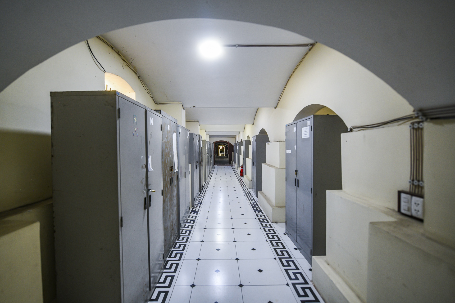 Tầng hầm thiết kế dạng bán hầm, dùng làm kho lưu trữ và phòng lưu phạm nhân trong quá trình xét xử, được kiểm soát ra vào.