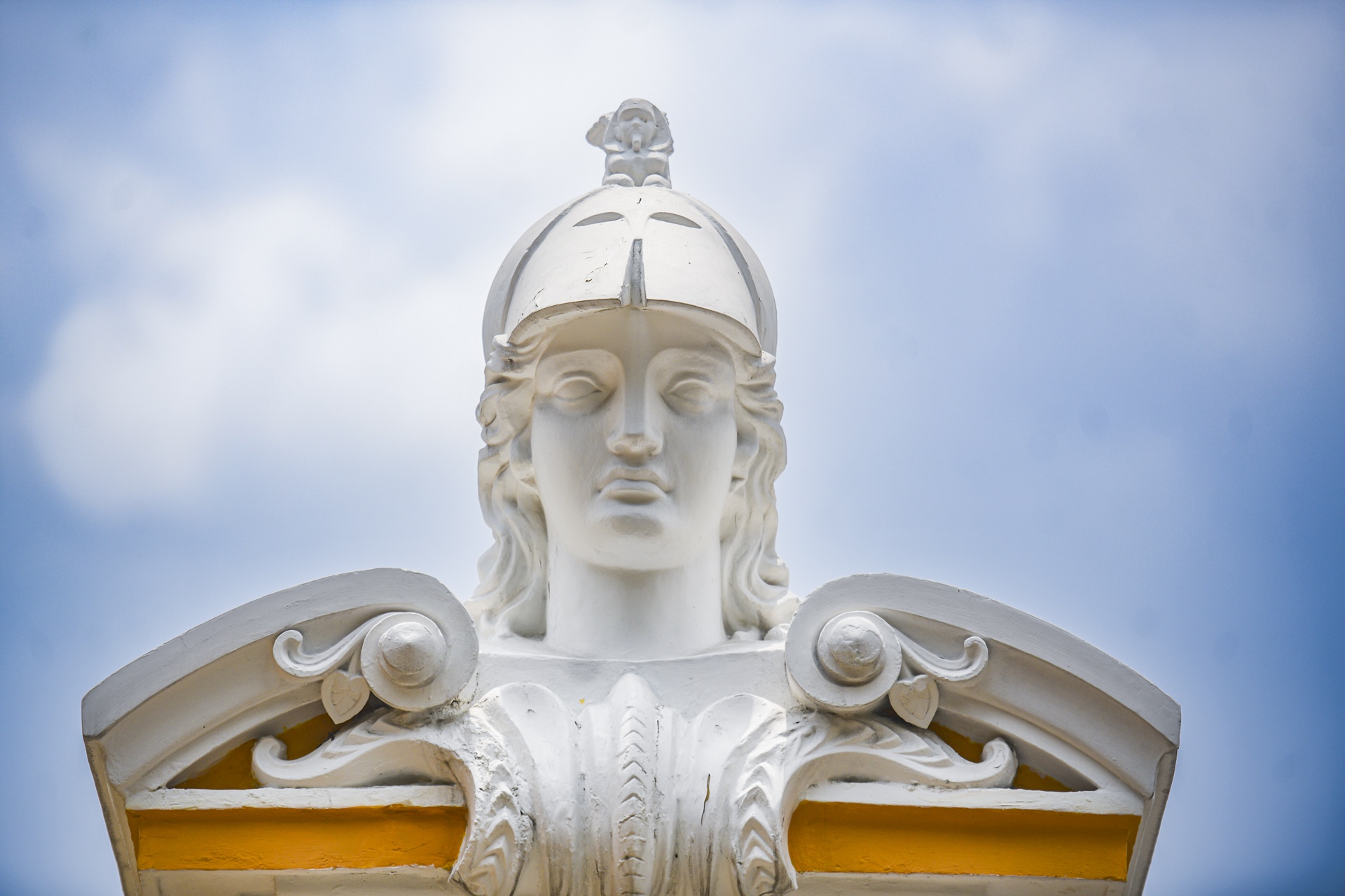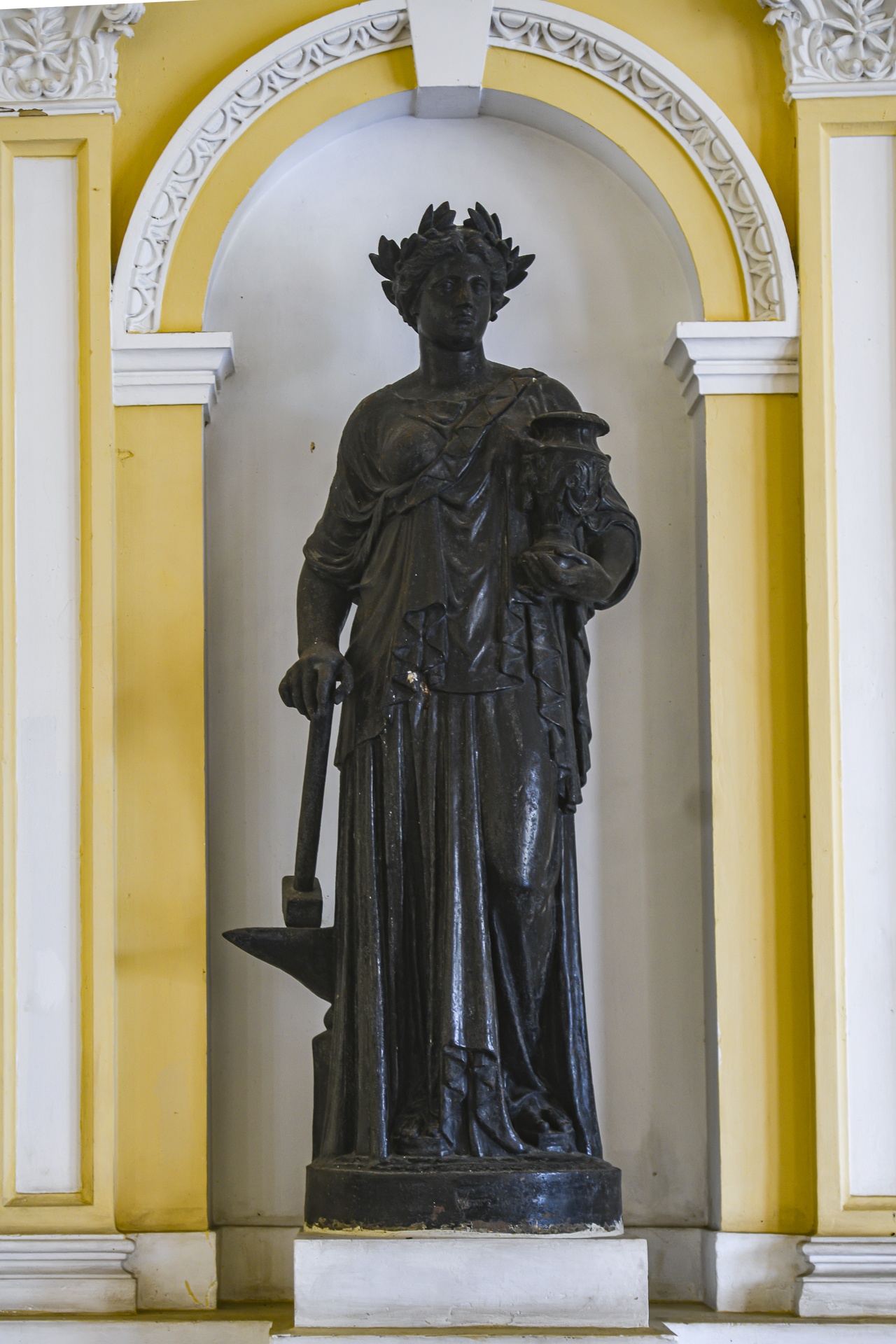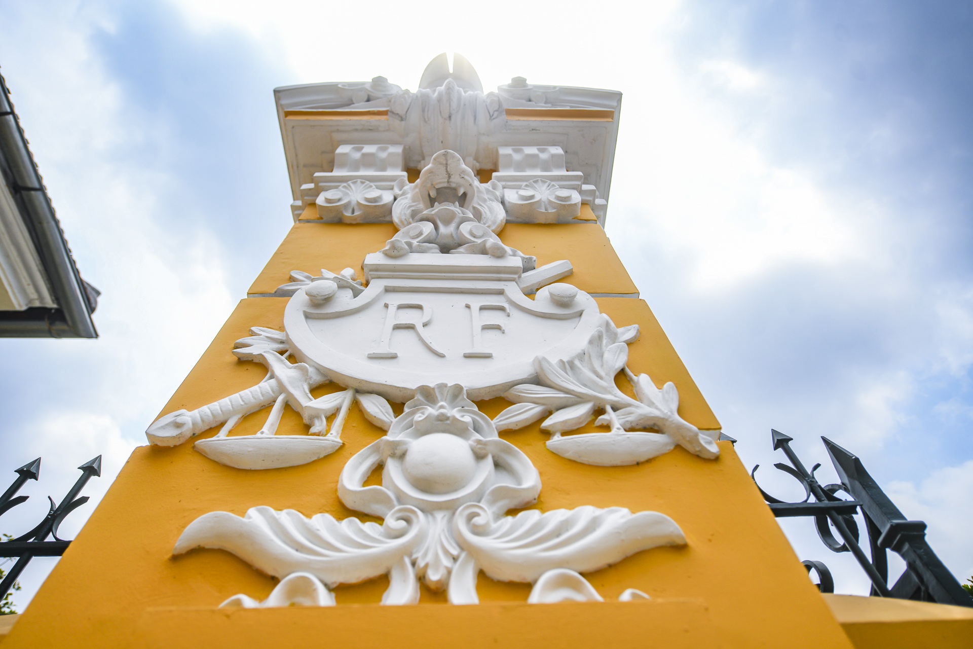 Ở cổng vào là 2 trụ cột cao khoảng 4,5 m, đặt tượng nàng Marianne - biểu tượng của cuộc cách mạng 1789 của Pháp, dưới tượng là cuốn sách thể hiện văn bản, bộ luật xã hội đặt ra để quản lý con người. Mặt trực diện cột được ốp đầu con hổ bị xiềng xích ở phần miệng, tượng trưng cho quyền lực được quản lý chặt chẽ. Con hổ treo tấm khiên thanh gương bắt chéo và nhành liễu - ý chỉ sự trừng phạt nhưng có cương và nhu.