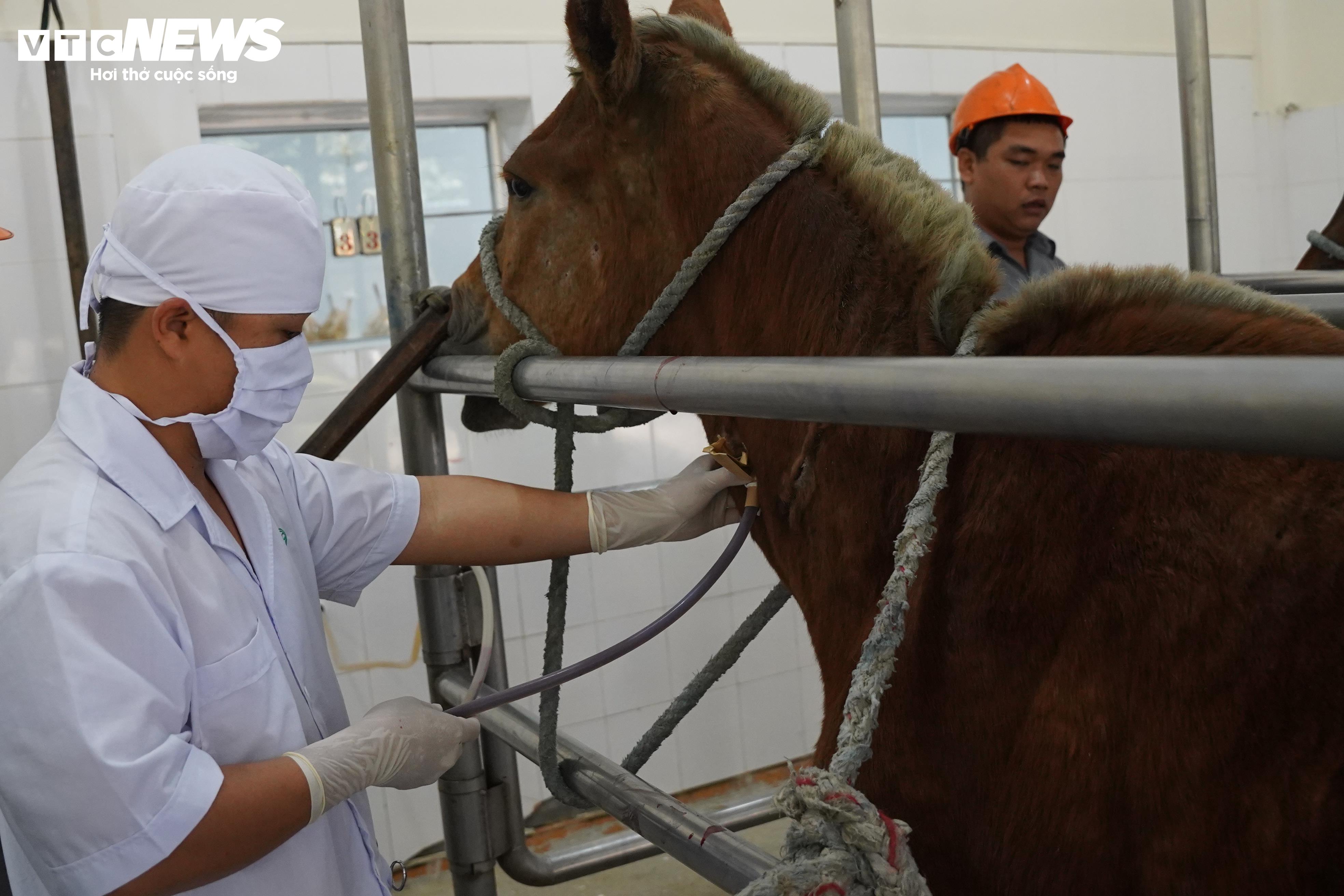Khi lượng kháng thể trong máu đạt yêu cầu, việc lấy máu được tiến hành theo tỷ lệ tối đa 1,5% trọng lượng cơ thể, bảo đảm an toàn, nhân đạo và không ảnh hưởng đến sức khỏe ngựa.