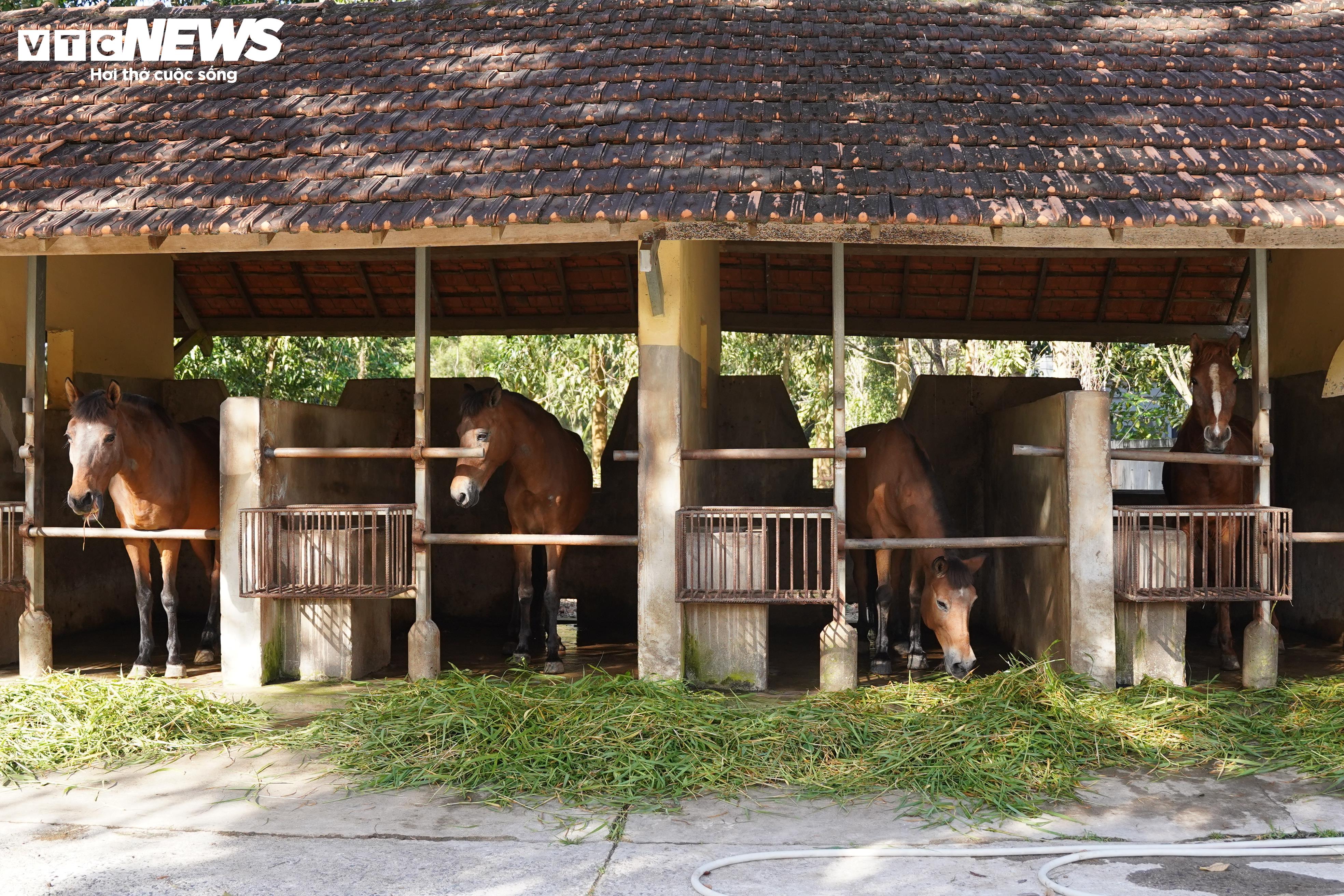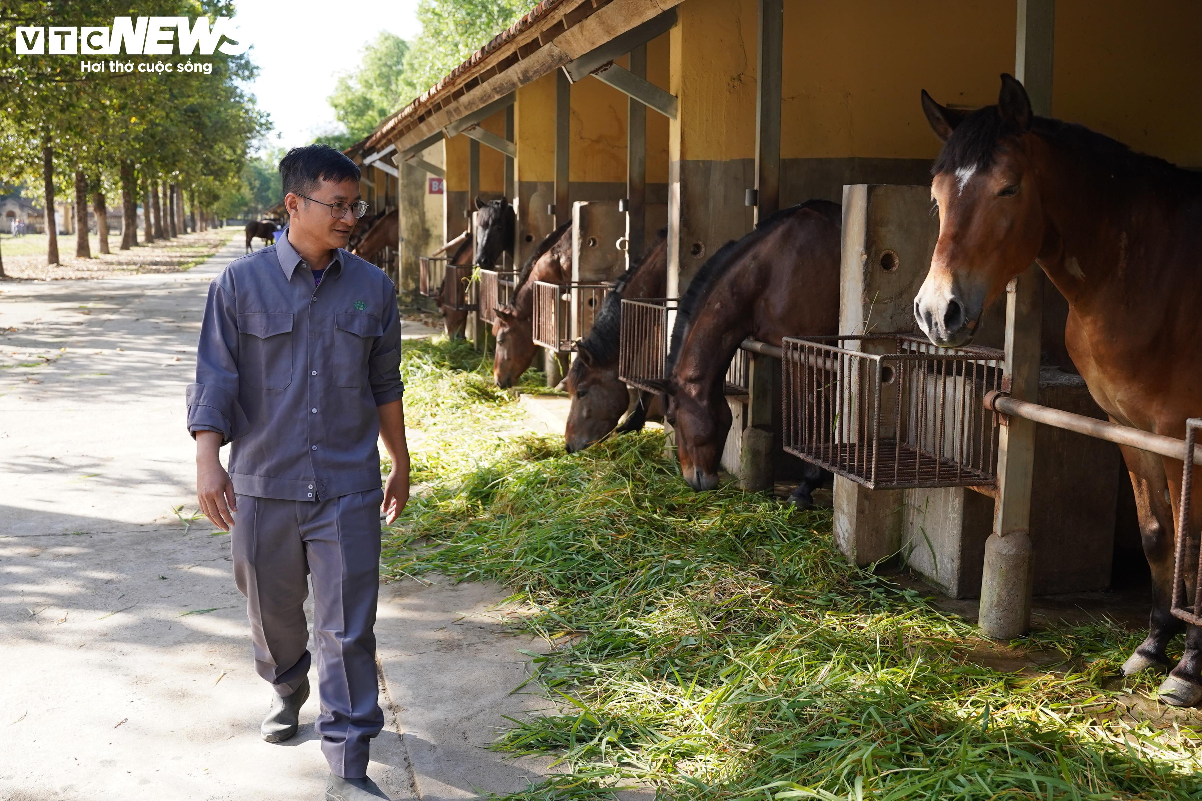 Đàn ngựa tại trại được chăm sóc theo chế độ riêng. Mỗi ngày, một con ngựa ăn từ 20 – 25 kg cỏ para tươi, cùng 2,5 – 3 kg thức ăn tinh. Trại dành hàng chục hecta để trồng cỏ và mía sạch, bảo đảm nguồn thức ăn an toàn, ổn định.