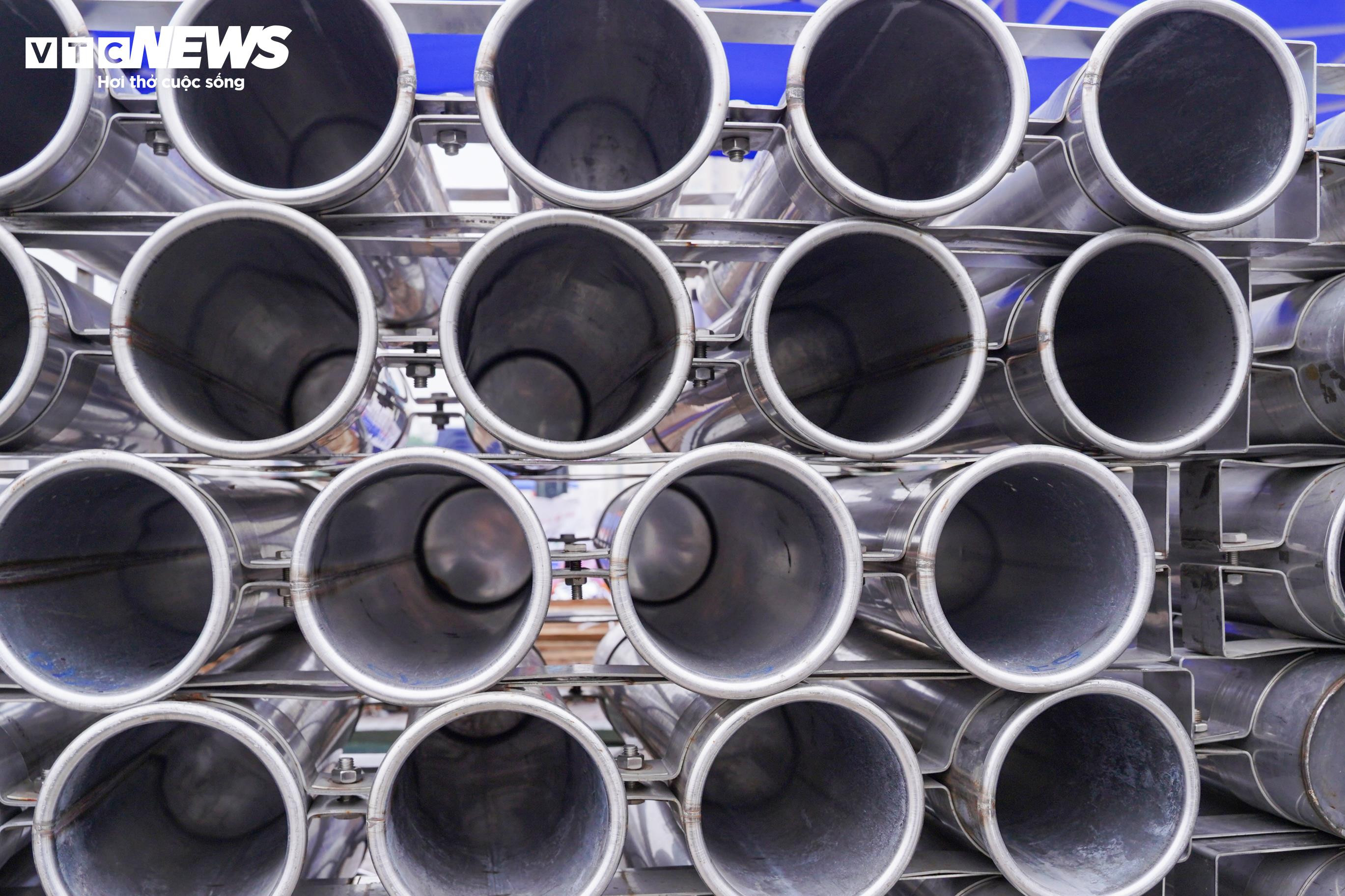Hệ thống ống phóng pháo hoa đã được lắp đặt, căn chỉnh cẩn thận trên toàn bộ khu vực trận địa.