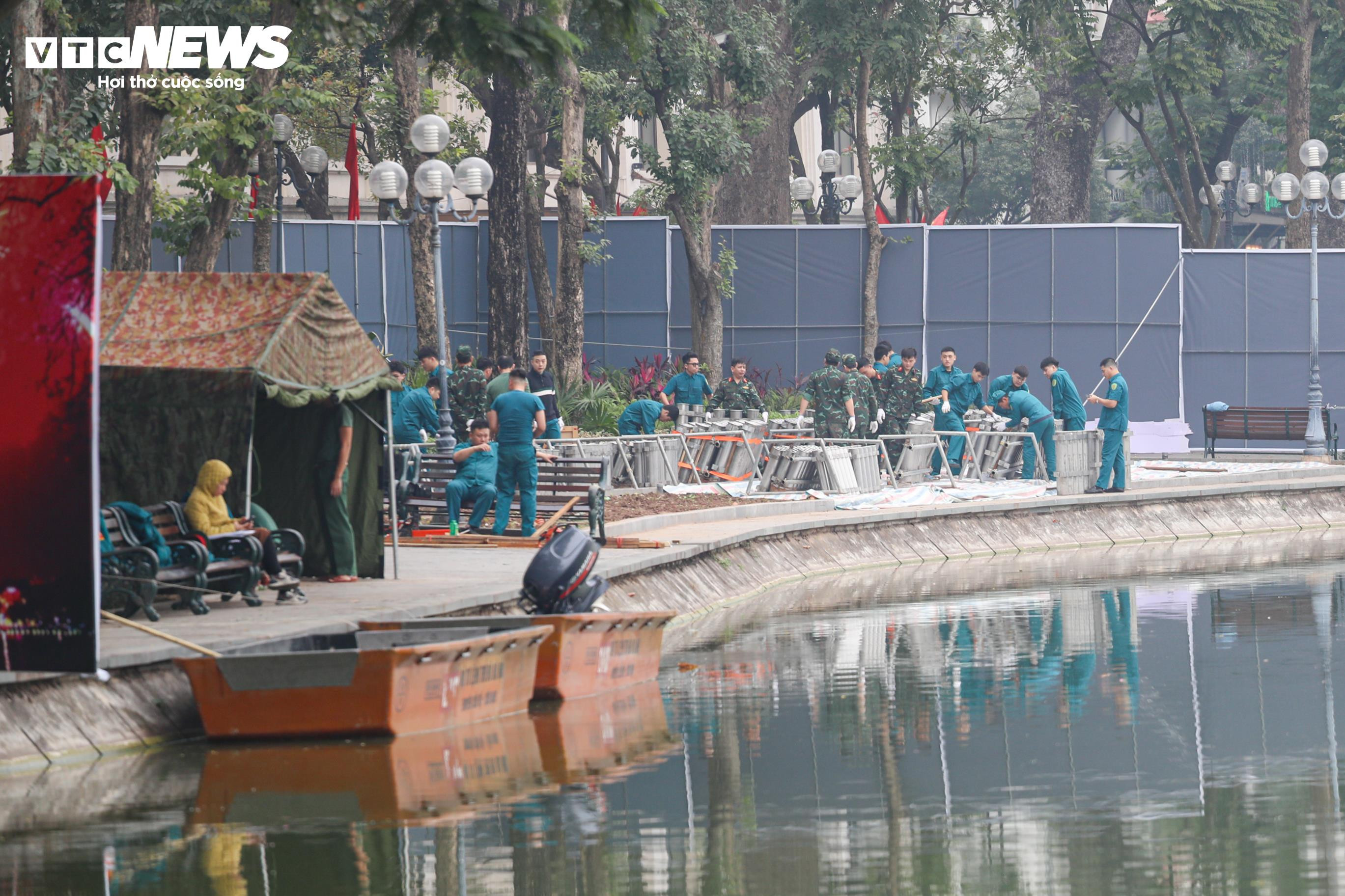 Tại vườn hoa Lạc Long Quân (phường Tây Hồ), một trong những điểm bắn pháo hoa của thành phố, công tác chuẩn bị đang được triển khai khẩn trương.