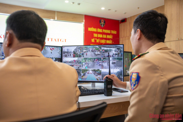 Theo Công an TP Hà Nội, việc ứng dụng công nghệ, chuyển đổi số, ứng dụng AI trong quản lý, điều hành giao thông là một nhiệm vụ vừa cấp bách vừa chiến lược. Hiện Trung tâm điều khiển giao thông Hà Nội đã được đầu tư nâng cấp giai đoạn 2. Trong ảnh, Trung tá Đào Việt Long - Phó trưởng Phòng CSGT Công an TP Hà Nội kiểm tra tại Trung tâm chỉ huy giao thông Hà Nội.