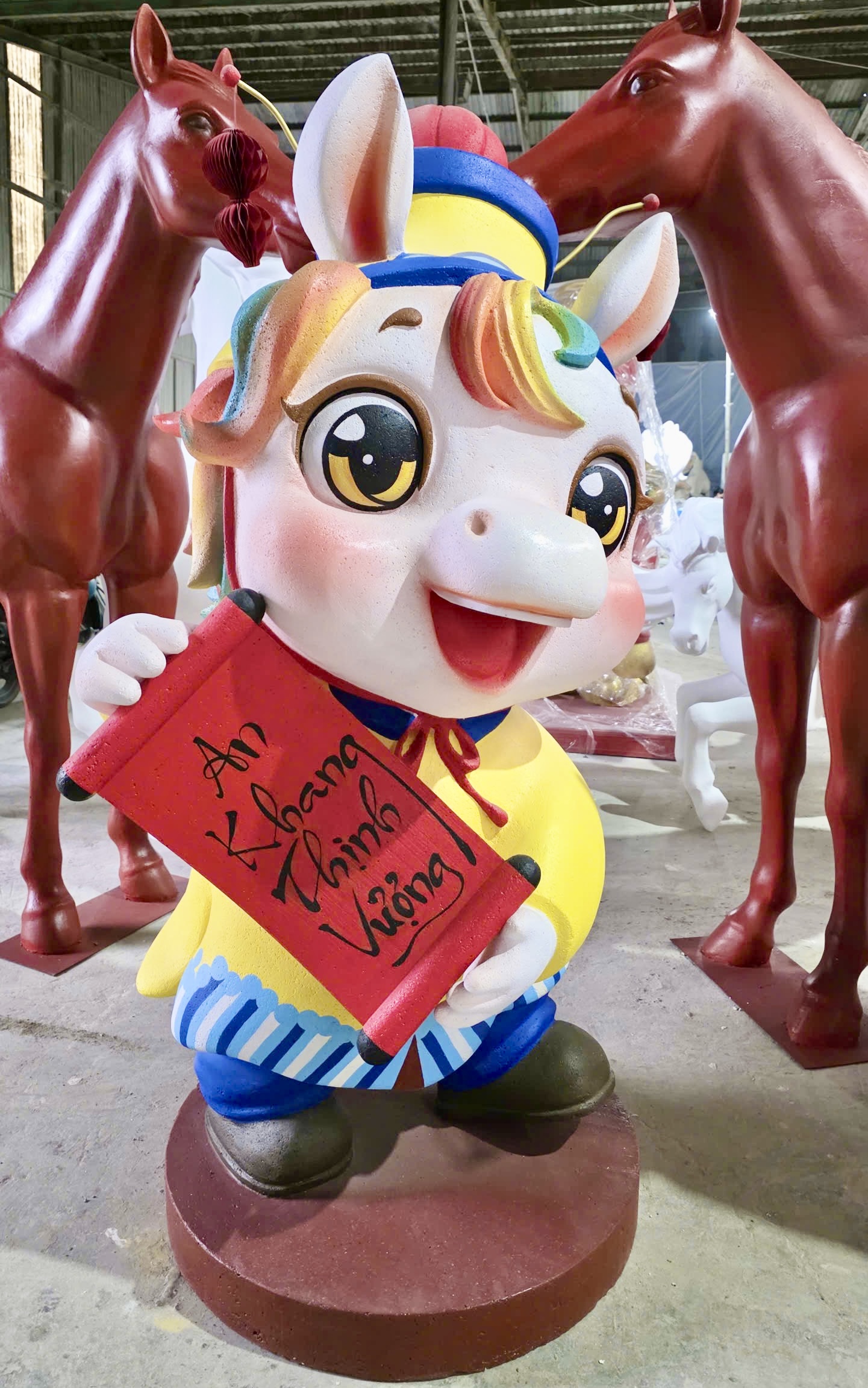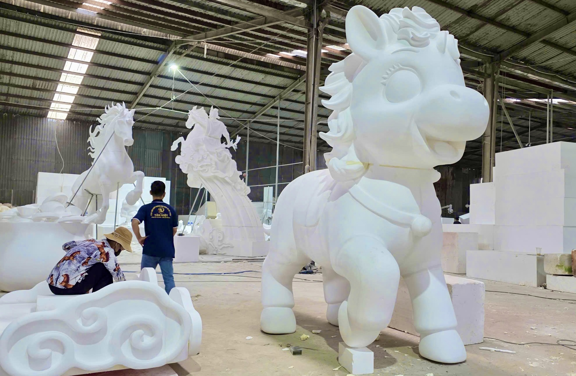Anh Phan Chí Linh (36 tuổi), chủ xưởng, cho biết đơn vị bắt đầu nhận đơn hàng từ tháng 12. Đến nay, xưởng đã thực hiện hơn 300 sản phẩm linh vật ngựa với kích thước và kiểu dáng đa dạng.
