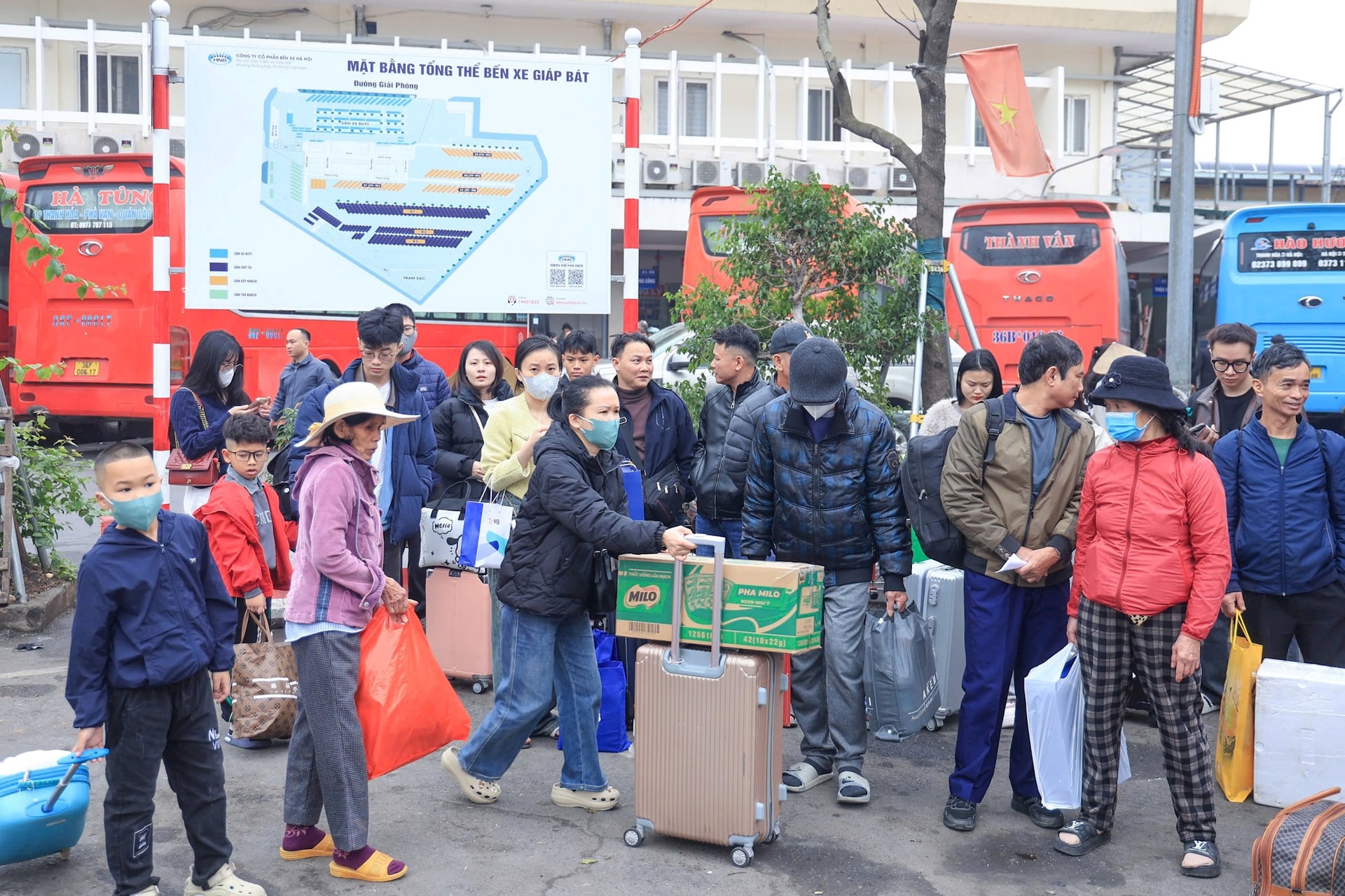 Giám đốc Bến xe Giáp Bát Nguyễn Hoàng Tùng cho biết, trong ngày 13-2, lượng khách đạt khoảng 16.000 lượt, tăng 400% so với ngày thường với khoảng 850-900 lượt xe hoạt động.
