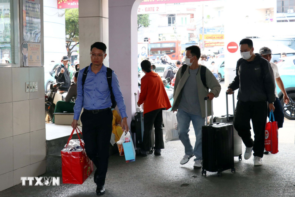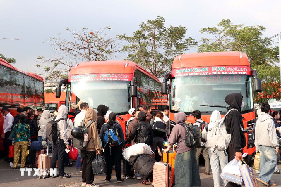 Hành khách lên xe về quê tại Bến xe miền Tây. (Ảnh: Tiến Lực/TTXVN)
