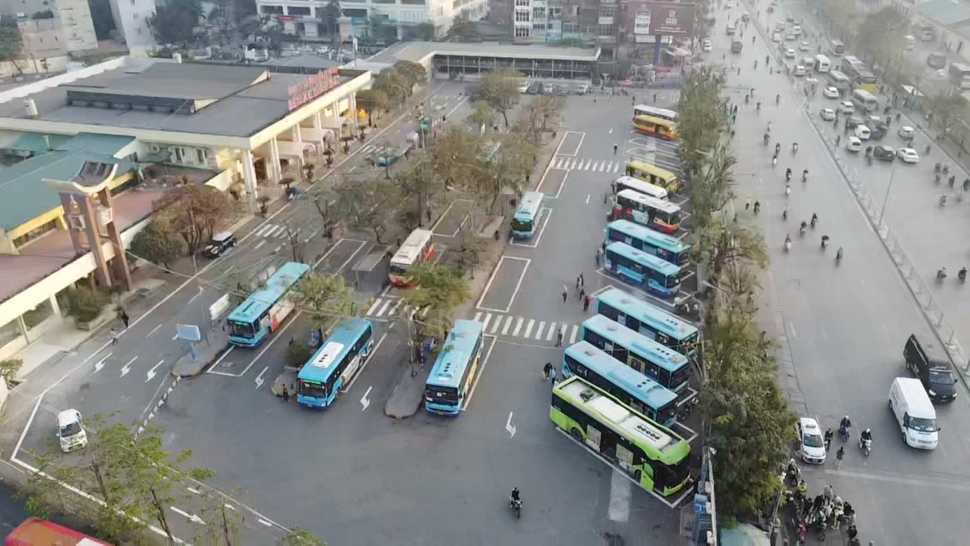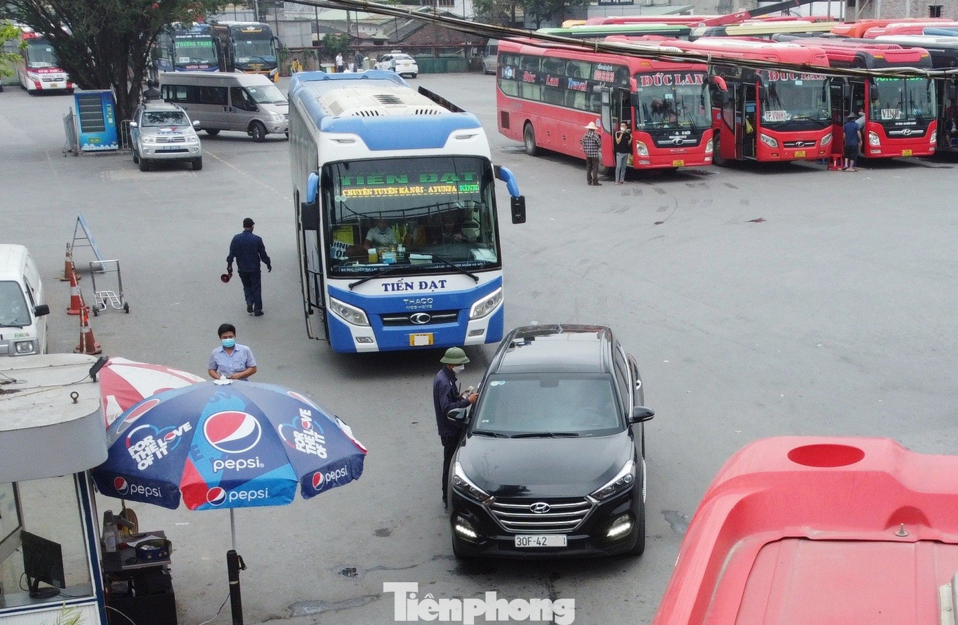 Toàn bộ khu vực quảng trường phía trước bến xe Giáp Bát được dành cho xe buýt và xe đón trả khách của người dân, xe taxi, xe công nghệ hoạt động.