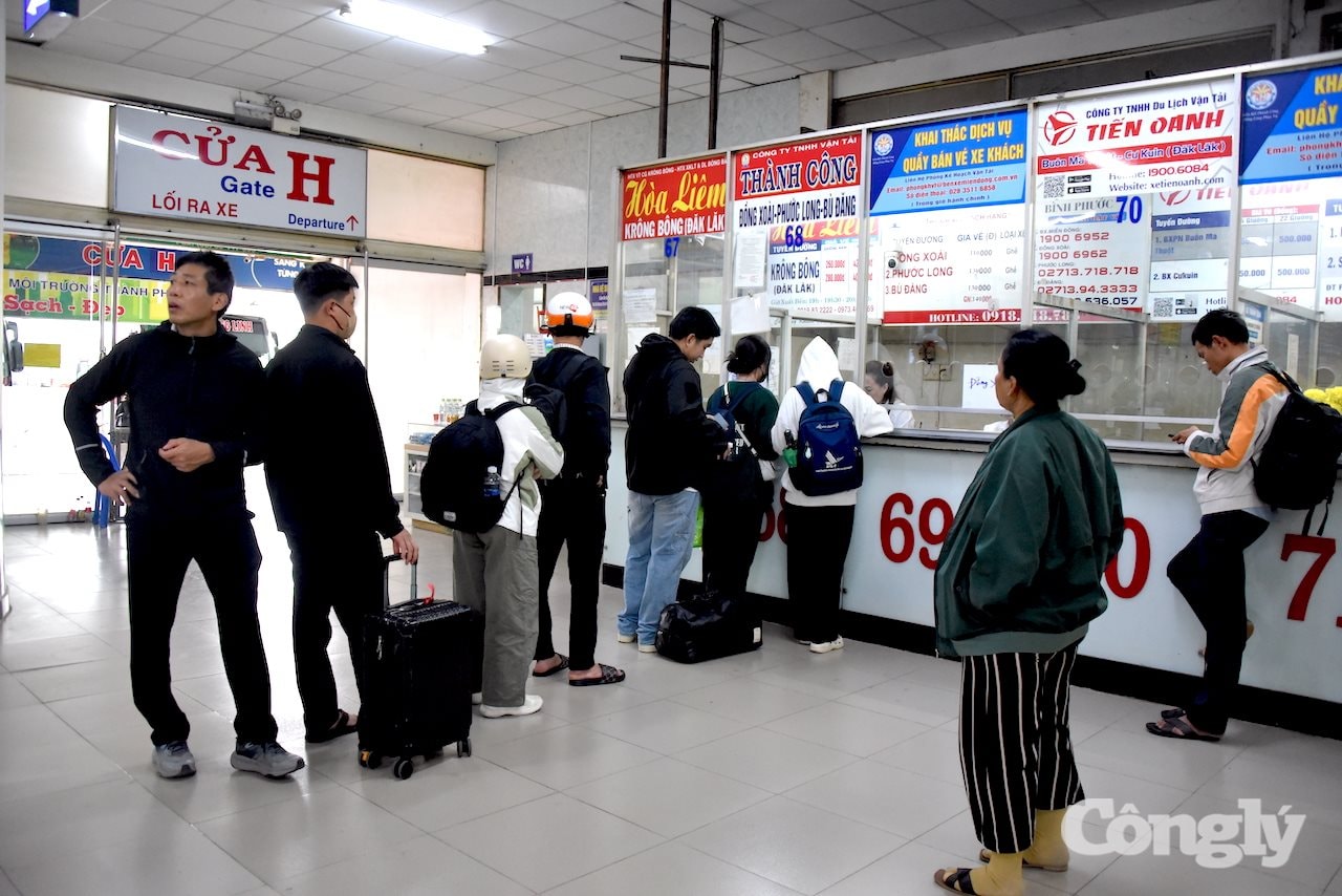 Tương tự, hai cha con ông Đèo cũng có mặt từ sớm ở bến chờ đến giờ lên xe. "Tôi và con gái về Đắk Lắk, sợ kẹt xe nên hai cha con tranh thủ đến đây từ 15h chiều", ông Đèo nói.