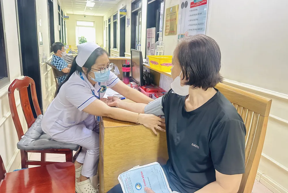 Bệnh nhân đo huyết áp tại bệnh viện trên địa bàn TP.HCM. Ảnh: THẢO PHƯƠNG