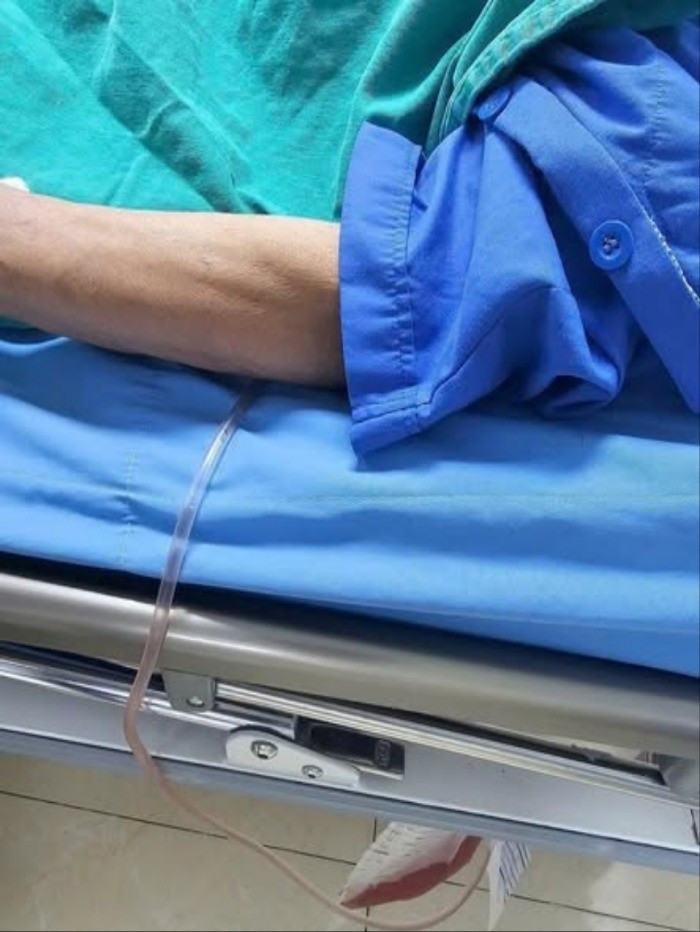 Trước đó, bệnh nhân ra vườn và bị khoảng 6 con ong vò vẽ đốt vào vùng đỉnh đầu và hai cánh tay. Vài giờ sau, bệnh nhân đau nhức dữ dội tại các vị trí bị đốt, xuất hiện tức ngực, buồn nôn, sưng mí mắt hai bên. Đến đêm, bệnh nhân bắt đầu tiểu ra máu đỏ toàn bãi - dấu hiệu cảnh báo tình trạng tan máu và tổn thương thận cấp.