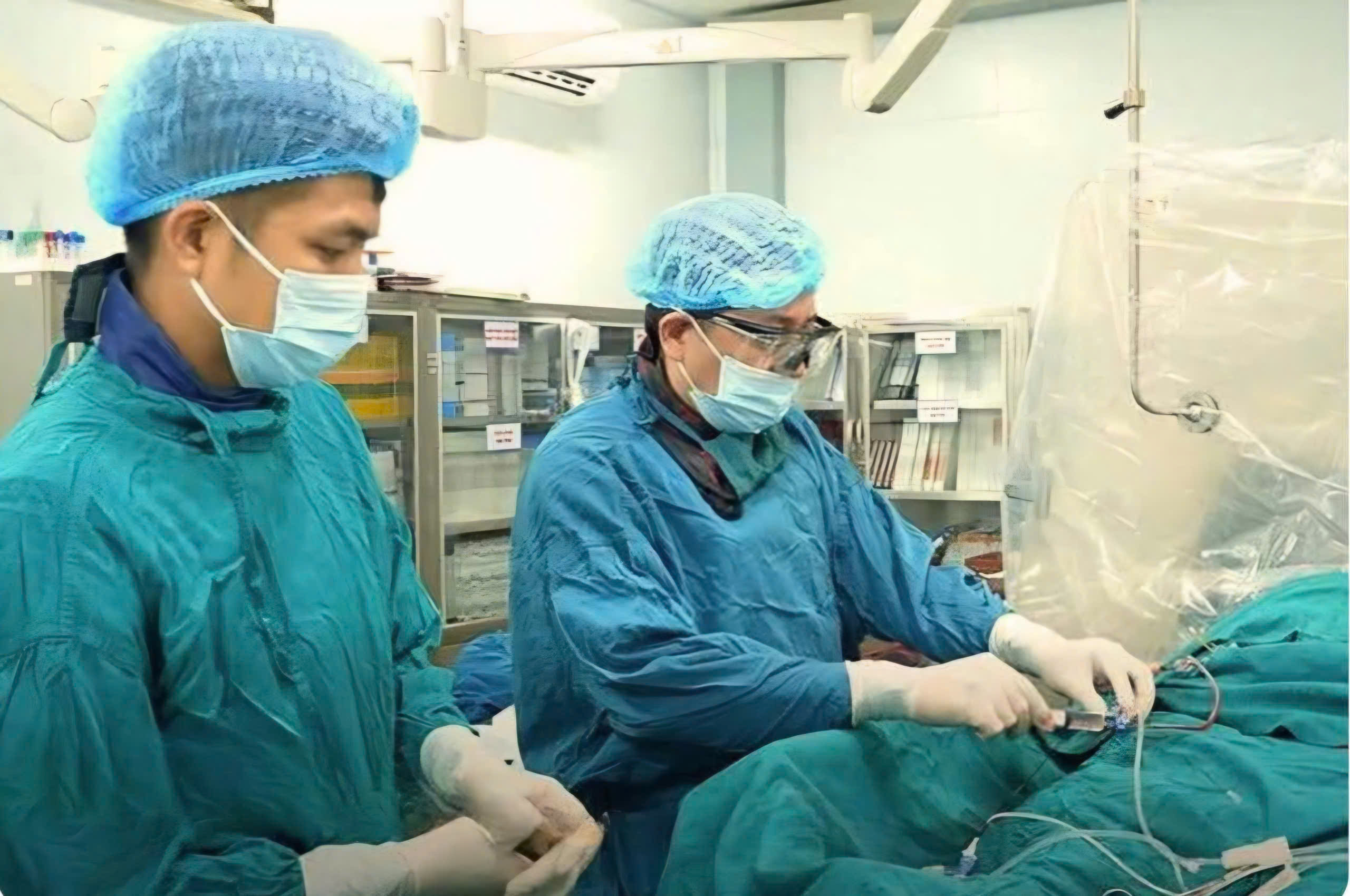 Các bác sĩ tiến hành ca can thiệp cho bệnh nhân đột quỵ.