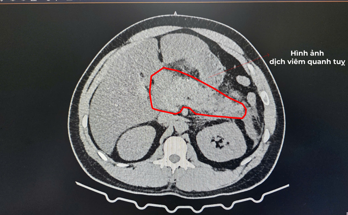 Hình ảnh chụp cắt lớp vi tính (CLVT) cùng các xét nghiệm cận lâm sàng đã xác định rõ tình trạng viêm tụy cấp nặng. Bệnh nhân được chẩn đoán viêm tụy cấp do tăng triglycerid máu và nhanh chóng được xử trí theo phác đồ chuyên môn, theo dõi sát toàn trạng, nhịn ăn giai đoạn đầu, nuôi dưỡng tĩnh mạch, đặt sonde dạ dày, bù dịch tích cực, sử dụng kháng sinh phối hợp liều cao, giảm đau, giảm tiết dịch vị dạ dày và kiểm soát chặt chẽ mỡ máu. Khi tình trạng lâm sàng cải thiện, bệnh nhân được chuyển dần sang chế độ ăn phù hợp theo đúng tình trạng bệnh.