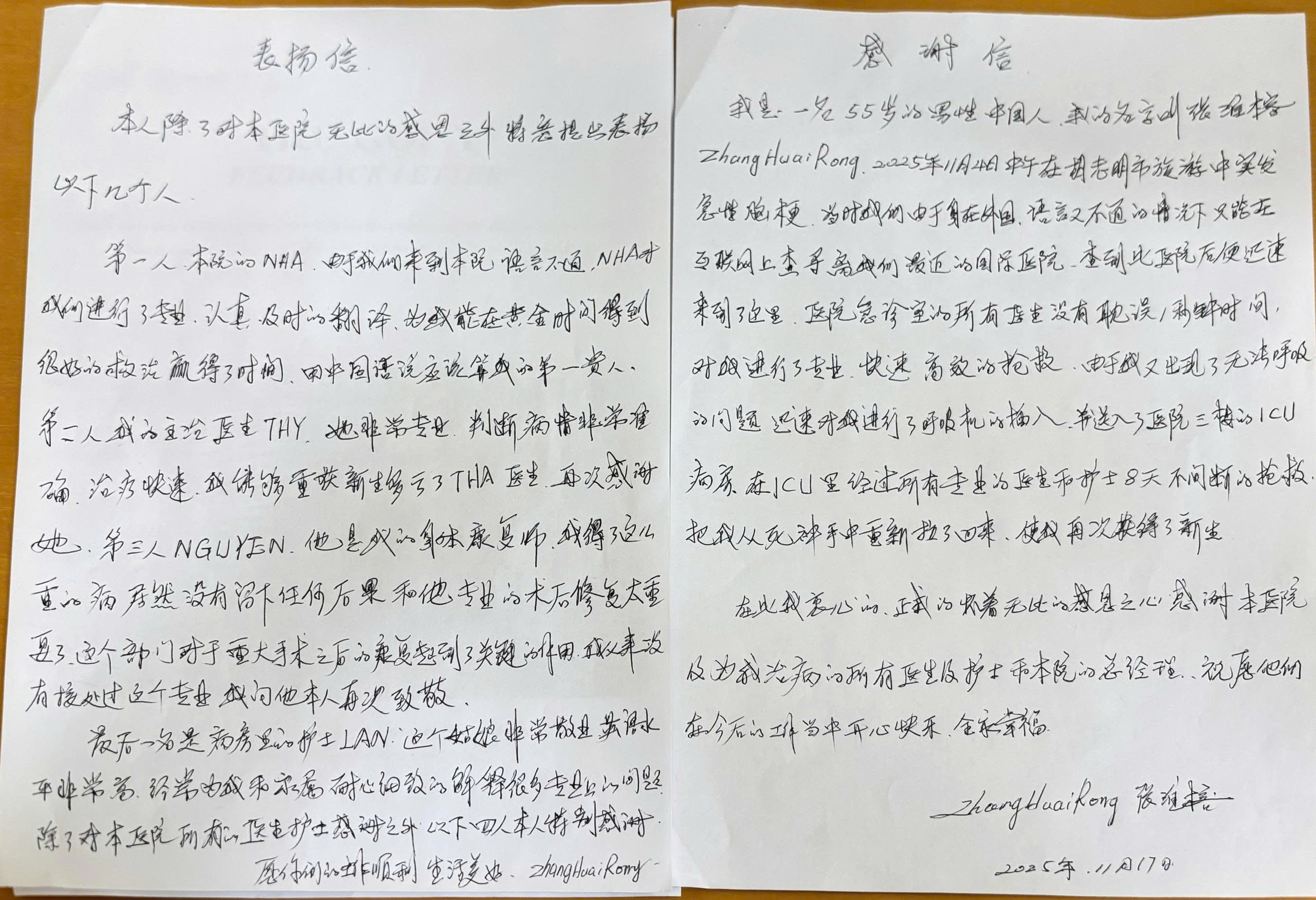 Ông Zhong Huai Rong cũng bày tỏ sự cảm ơn sâu sắc đối với các bác sĩ, y tá đã chăm sóc tận tình, chu đáo, trách nhiệm và chuyên nghiệp trong suốt quá trình điều trị.