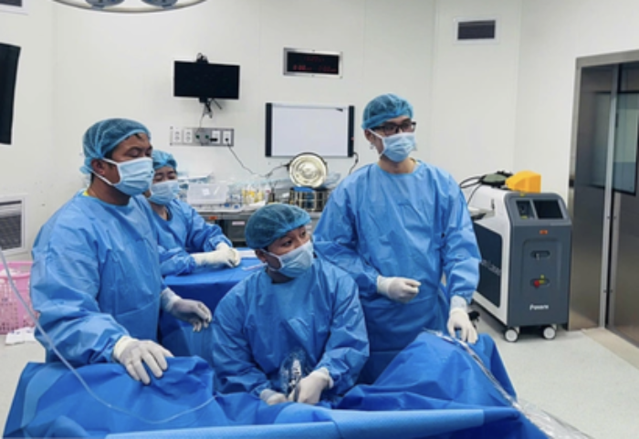 Bác sĩ Mai Văn Lực cùng các đồng nghiệp thực hiện phẫu thuật cho người bệnh. Ảnh: BSCC.