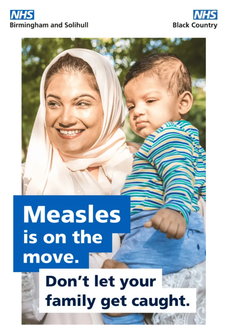 Tại Anh, Dịch vụ Y tế Quốc gia chính phủ Anh đã dán nhiều áp-phích để cảnh báo các bậc phụ huynh về sự nguy hiểm của bệnh sởi và khuyến khích họ tiêm phòng cho con em mình nhằm ngăn ngừa sự lây lan của bệnh. Ảnh: The Times