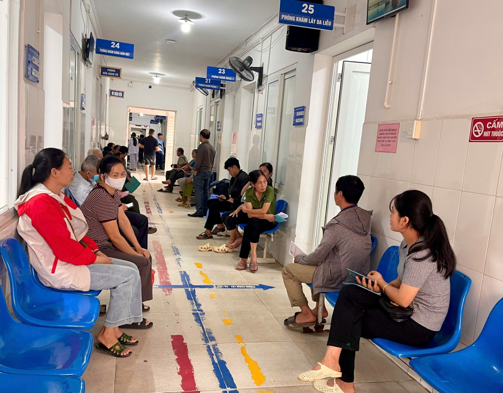 Tại Phòng khám Da liễu, trong 2 ngày qua, các bác sĩ tiếp nhận khoảng 60 lượt người đến khám, hơn một nửa trong số này bị viêm da hoặc các bệnh lý về da; khoảng 25 bệnh nhân có biểu hiện sốt.