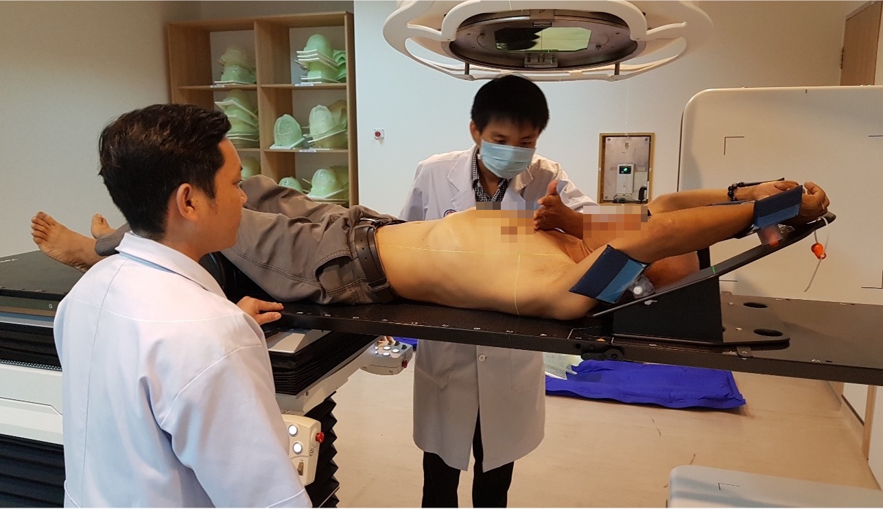 Bệnh nhân ung thư phổi được xạ trị. Ảnh: BVCC.