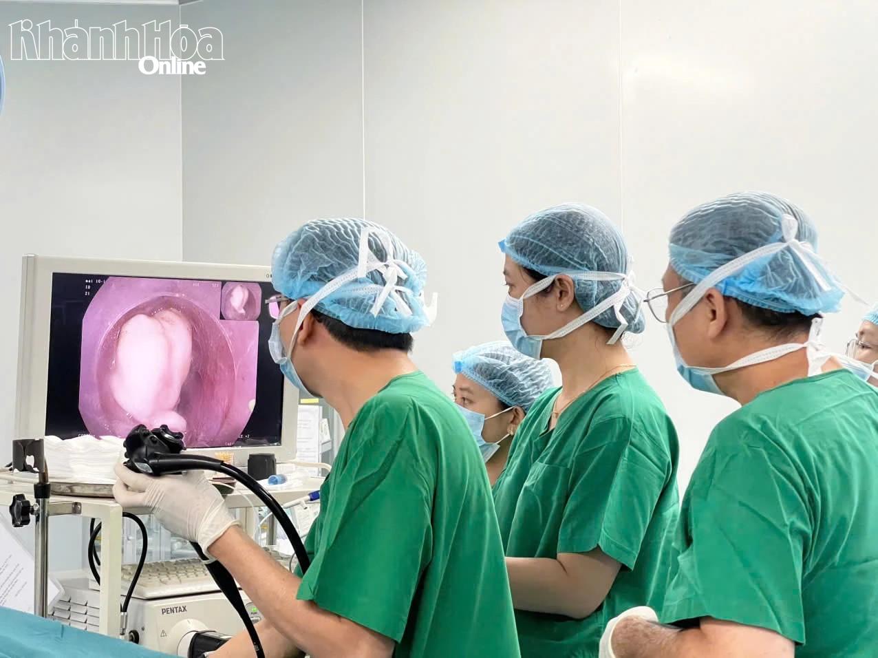 Đầu tháng 1-2026, Bệnh viện 22-12 tiếp nhận bệnh nhân N.T.M (sinh năm 1957, phường Nha Trang) trong tình trạng nuốt vướng, nghẹn cổ kéo dài. Theo chia sẻ của bệnh nhân, khối u thực quản được phát hiện hơn 10 năm trước. Nhưng do bệnh nhân chủ quan, không tái khám định kỳ nên các triệu chứng ngày càng nặng. Qua thăm khám lâm sàng, nội soi thực quản, dạ dày kết hợp nội soi siêu âm Mini Probe, ê-kíp bác sĩ Bệnh viện 22-12 phát hiện bệnh nhân có khối u dưới niêm mạc thực quản, kích thước khoảng 18 - 20mm. Sau khi hội chẩn chuyên môn và được sự hỗ trợ trực tiếp từ Tiến sĩ Lê Quang Nhân - Phó Chủ tịch Hội Nội soi can thiệp Việt Nam, các bác sĩ đã quyết định can thiệp bằng kỹ thuật nội soi cắt tách u dưới niêm mạc tạo đường hầm STER. Đây là kỹ thuật nội soi hiện đại, tiên tiến vừa được triển khai tại bệnh viện. Thông qua nội soi, các bác sĩ đã loại bỏ hoàn toàn khối u, bảo tồn thành thực quản, không gây biến chứng.