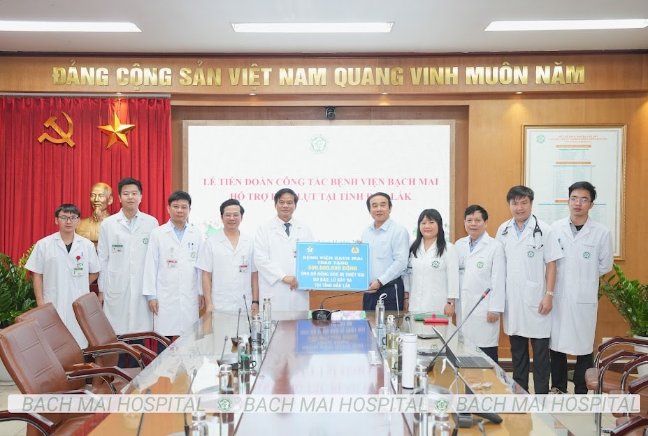 Bệnh viện Bạch Mai đã hỗ trợ tỉnh Đắk Lắk 500 triệu đồng khắc phục hậu quả thiên tai. Ảnh: BVCC