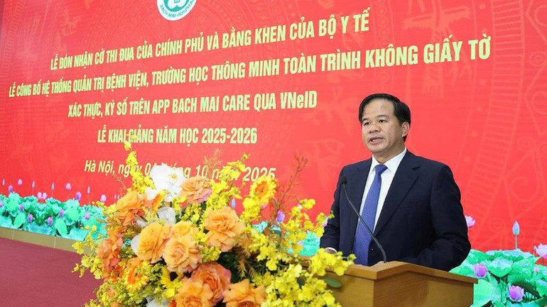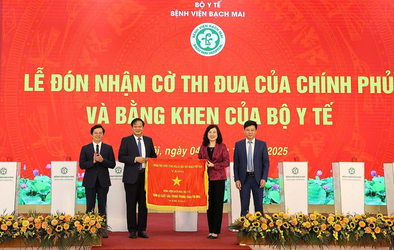 Tại buổi lễ, Bệnh viện Bạch Mai cũng đón nhận Cờ thi đua của Chính phủ và Bằng khen của Bộ Y tế; khai giảng năm học 2025-2026 của Trường cao đẳng y tế Bạch Mai.
