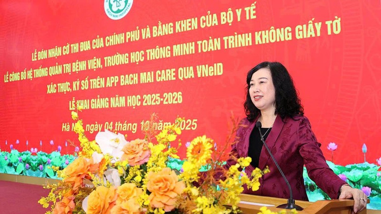 Phát biểu tại buổi lễ, Bộ trưởng Y tế Đào Hồng Lan nhấn mạnh, trong thời gian qua, Bộ Chính trị đã ban hành nhiều nghị quyết quan trọng, đặc biệt là Nghị quyết 57-NQ/TW về đột phá phát triển khoa học, công nghệ, đổi mới sáng tạo và chuyển đổi số quốc gia; Nghị quyết 72-NQ/TW về các giải pháp đột phá tăng cường bảo vệ, chăm sóc và nâng cao sức khỏe nhân dân. Hai nghị quyết này chính là kim chỉ nam chiến lược để ngành y tế chuyển mình mạnh mẽ trong giai đoạn mới.