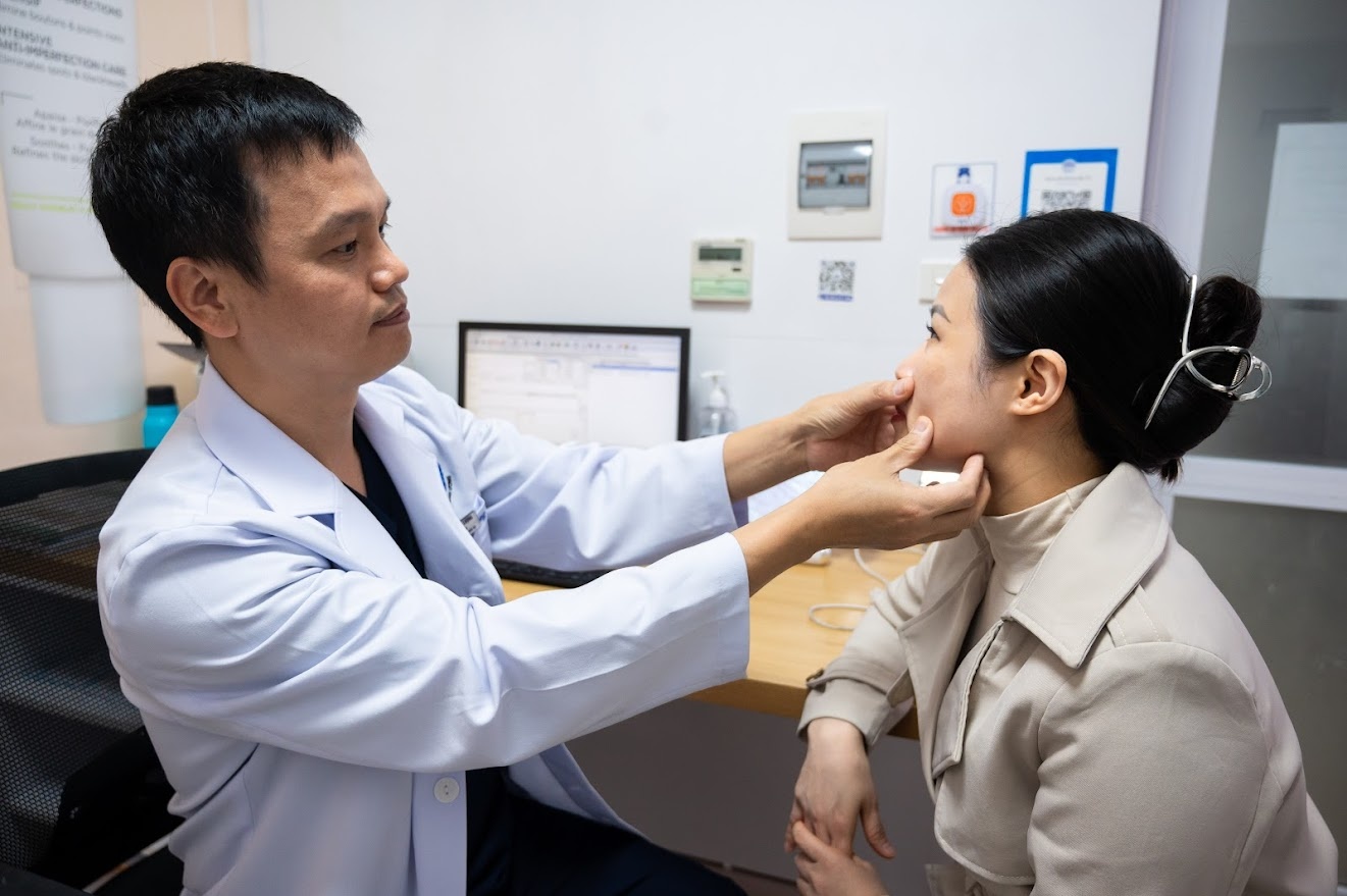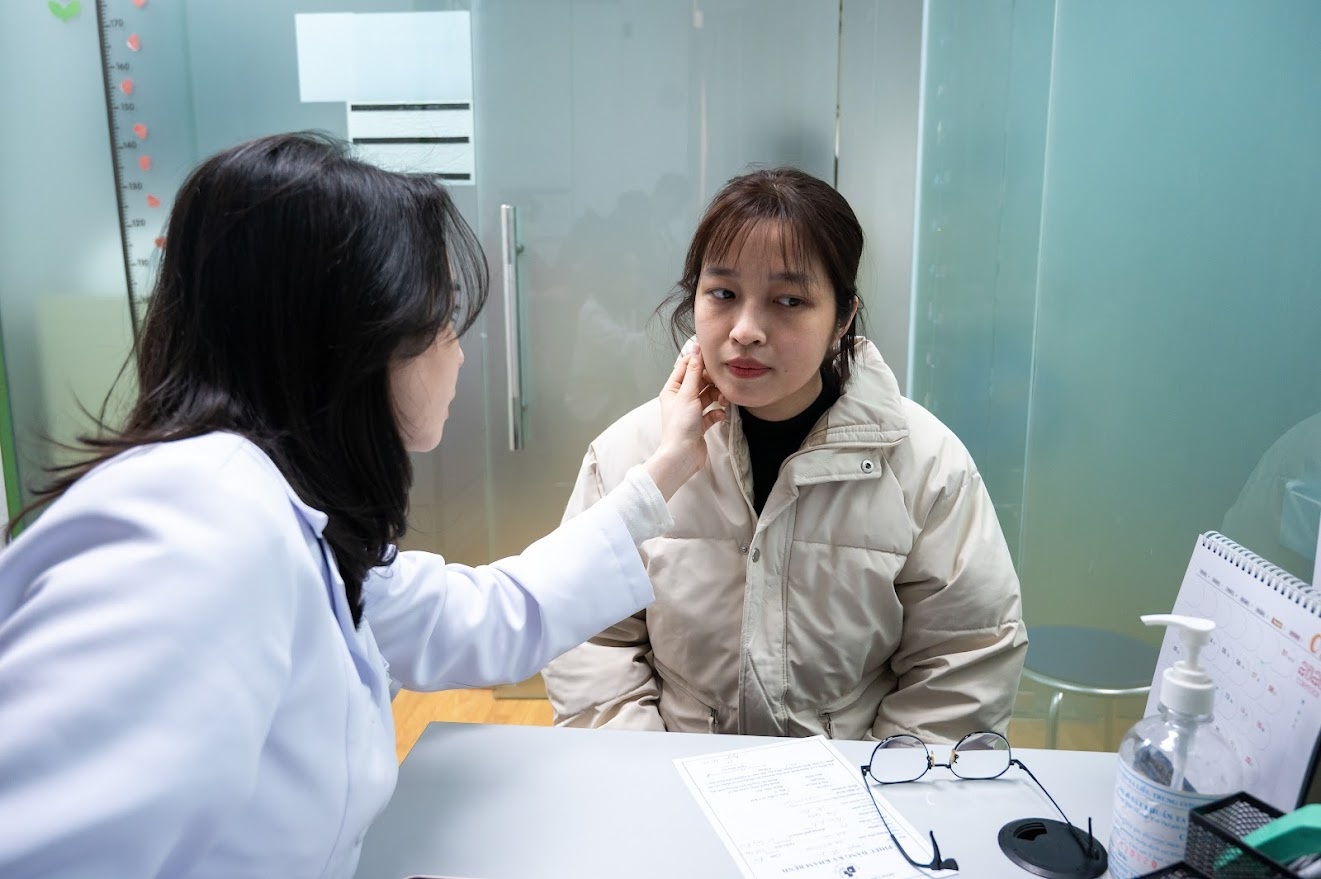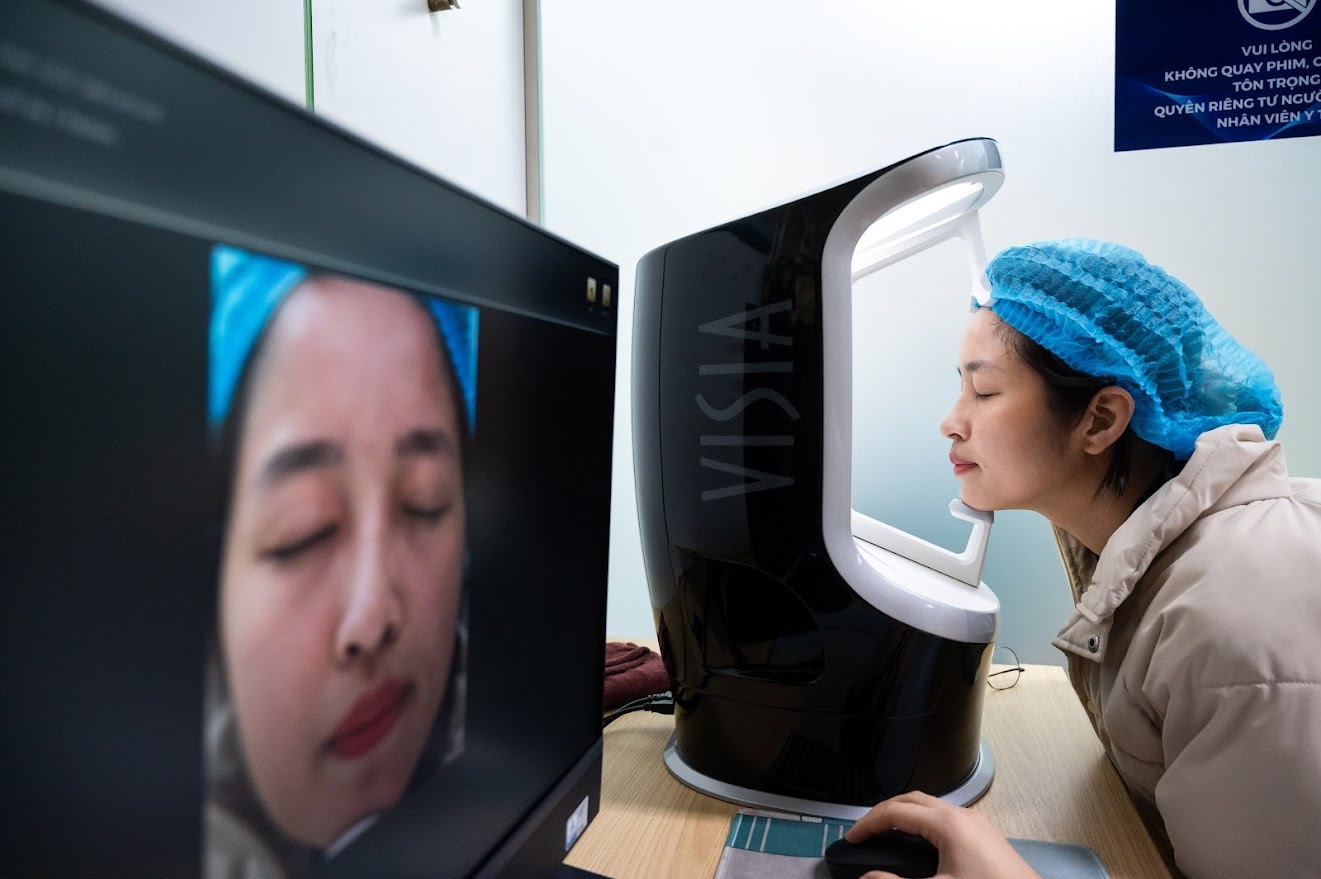 Qua thăm khám và soi da chuyên sâu, bác sĩ nhanh chóng "bóc tách" những tổn thương không thể nhìn thấy bằng mắt thường. Làn da của Hà xuất hiện nám nhẹ ẩn sâu, thiếu ẩm kéo dài.