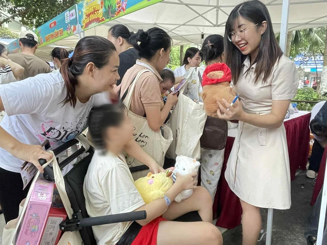 Hình ảnh tại các gian hàng tặng quà miễn phí cho các bệnh nhân nhi