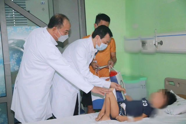 Trước đó, Thứ trưởng Bộ Y tế Nguyễn Tri Thức đã đến thăm hỏi, động viên và tặng quà các bệnh nhi có hoàn cảnh khó khăn đang điều trị tại Bệnh viện Nhi Trung ương và Viện Huyết học - Truyền máu Trung ương.