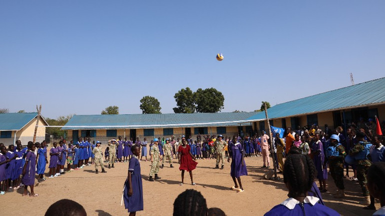 Trong khuôn khổ chương trình, các trận giao lưu bóng chuyền giữa các chiến sĩ mũ nồi xanh Việt Nam với thầy và trò Trường tiểu học Nữ sinh Bentiu đã đem lại không khí vui vẻ, thân tình.