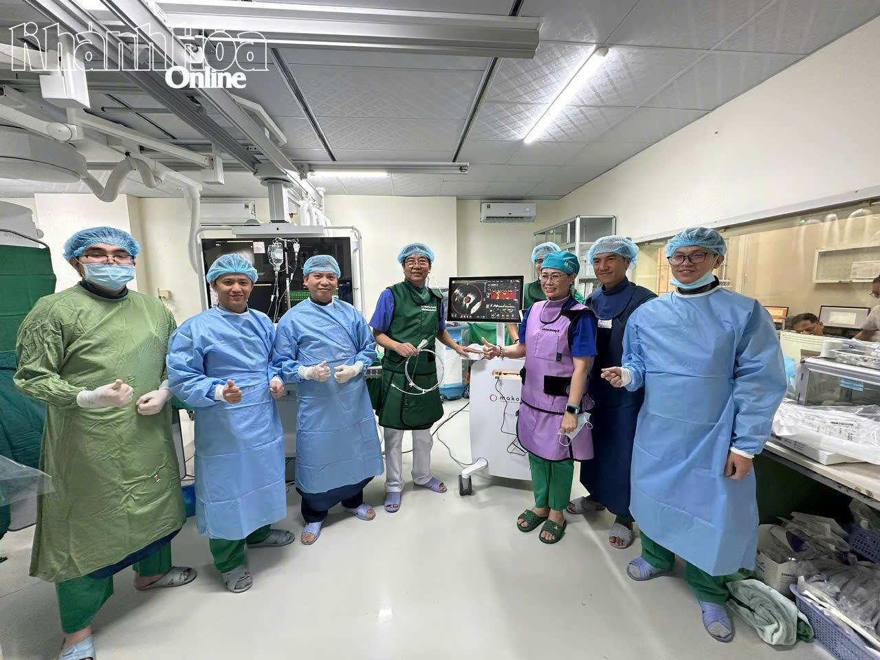Phó Giáo sư, tiến sĩ, bác sĩ Huỳnh Văn Thưởng và đội ngũ y, bác sĩ Bệnh viện Đa khoa Khánh Hòa chuyển giao kỹ thuật can thiệp tim mạch cho Bệnh viện Đa khoa Thiện Hạnh.