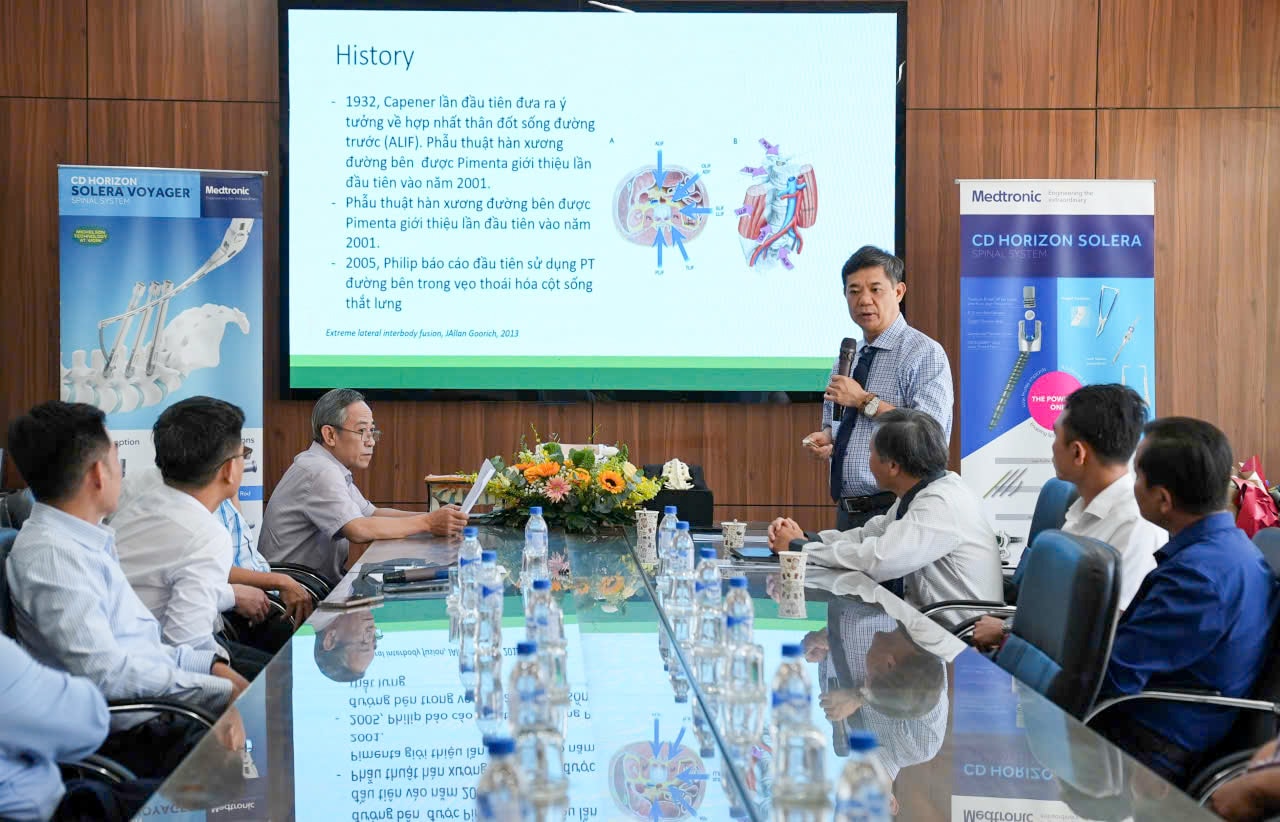 Trong chương trình hội thảo, các chuyên gia hướng dẫn thực hành trên xương giả và mổ thị phạm. Việc tiếp cận kỹ thuật OLIF sẽ giúp đội ngũ bác sĩ Bệnh viện Đa khoa Quảng Nam nâng cao trình độ, năng lực, qua đó có thể triển khai hiệu quả kỹ thuật này, phục vụ người bệnh trong thời gian tới.