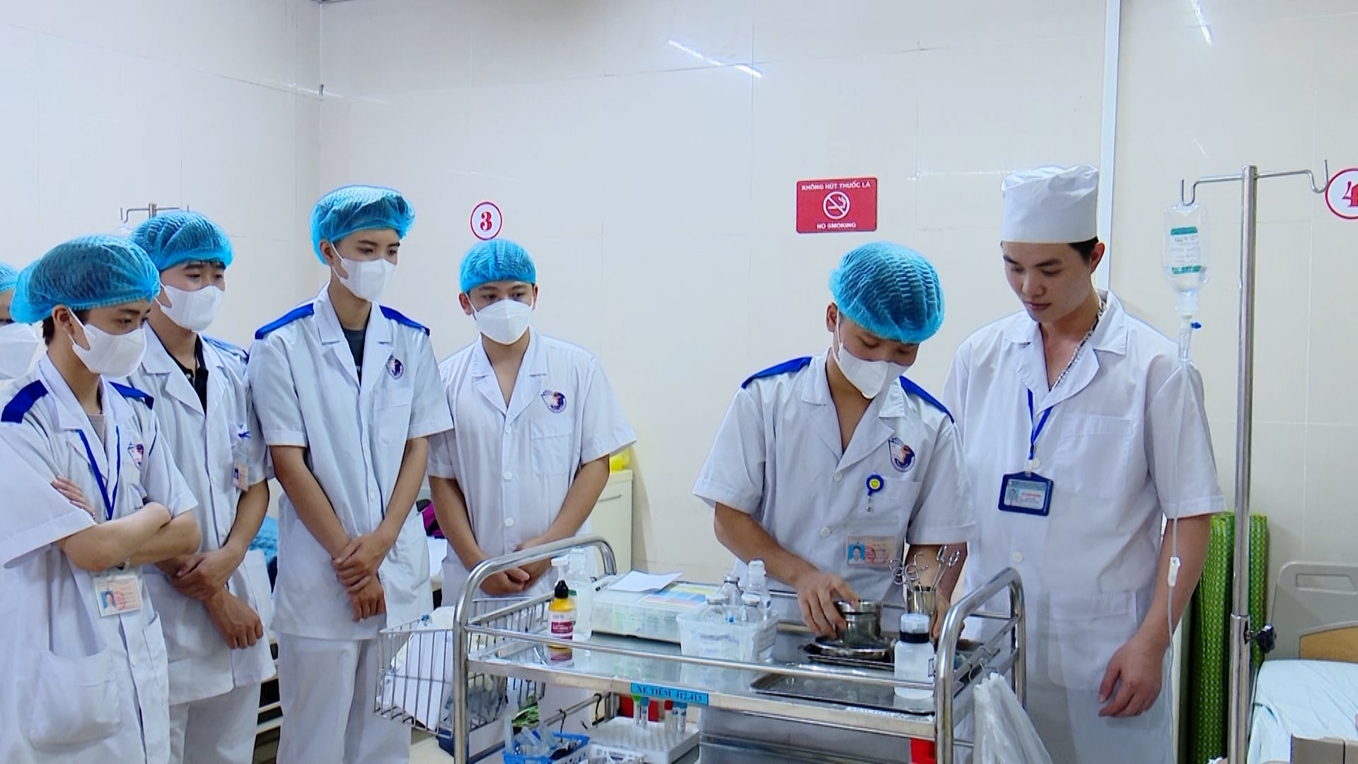 Buổi học lâm sàng trực tiếp tại Bệnh viên Đa khoa tỉnh Ninh Bình. Ảnh: Thu Hường