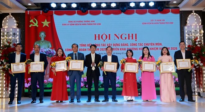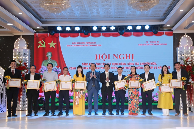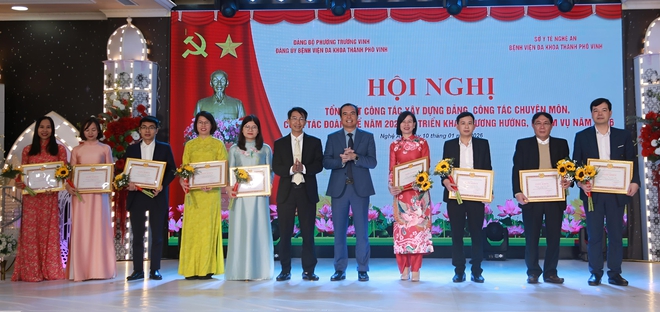Dịp này, Đảng ủy Bệnh viện Đa khoa TP Vinh đã tặng Giấy khen cho 1 tập thể và 29 cá nhân "Hoàn thành xuất sắc nhiệm vụ" tiêu biểu năm 2025.