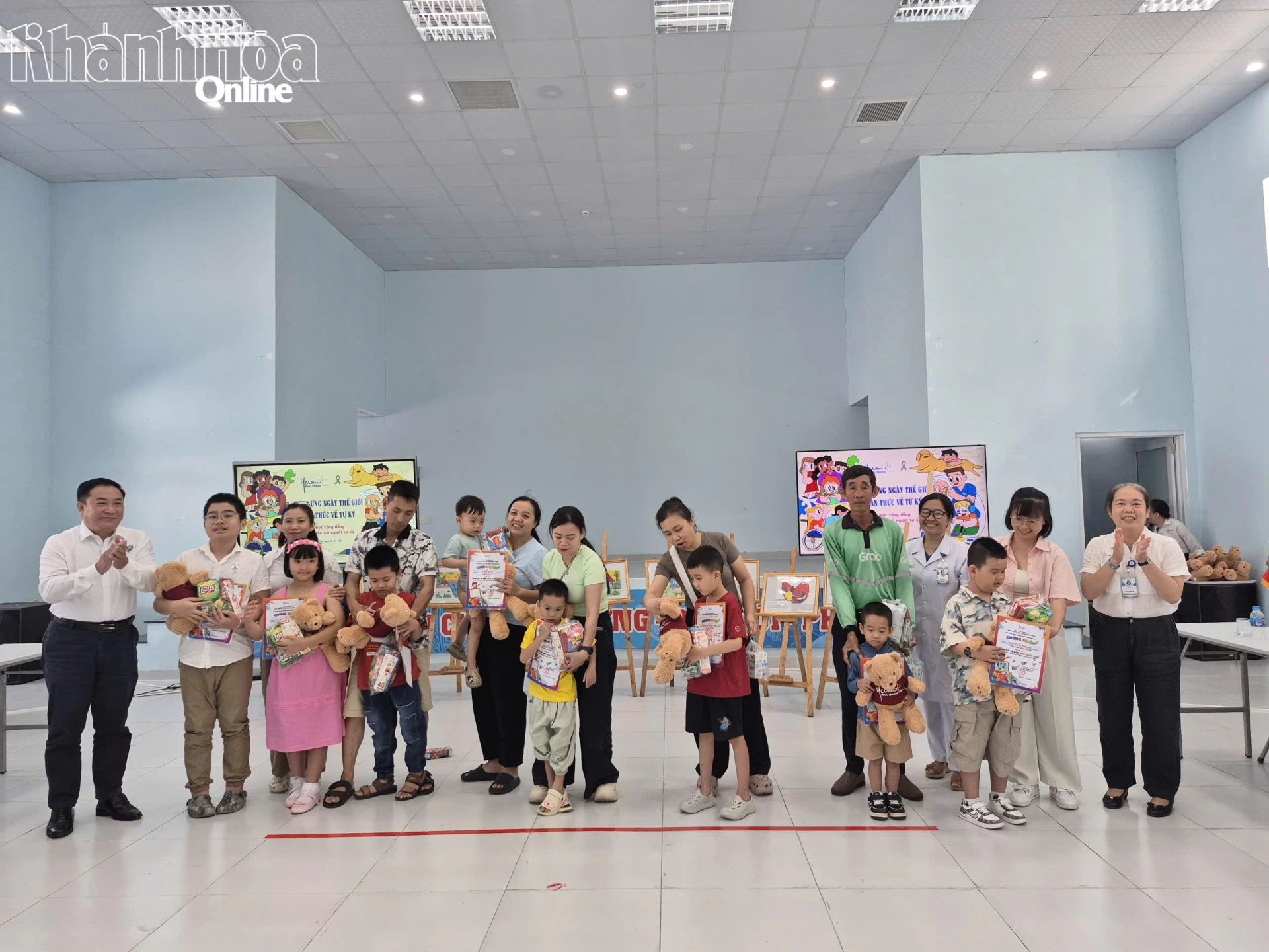 Đại diện lãnh đạo Sở Y tế và Bệnh viện Đa khoa Yersin Nha Trang trao thưởng cho các cháu đạt giải.