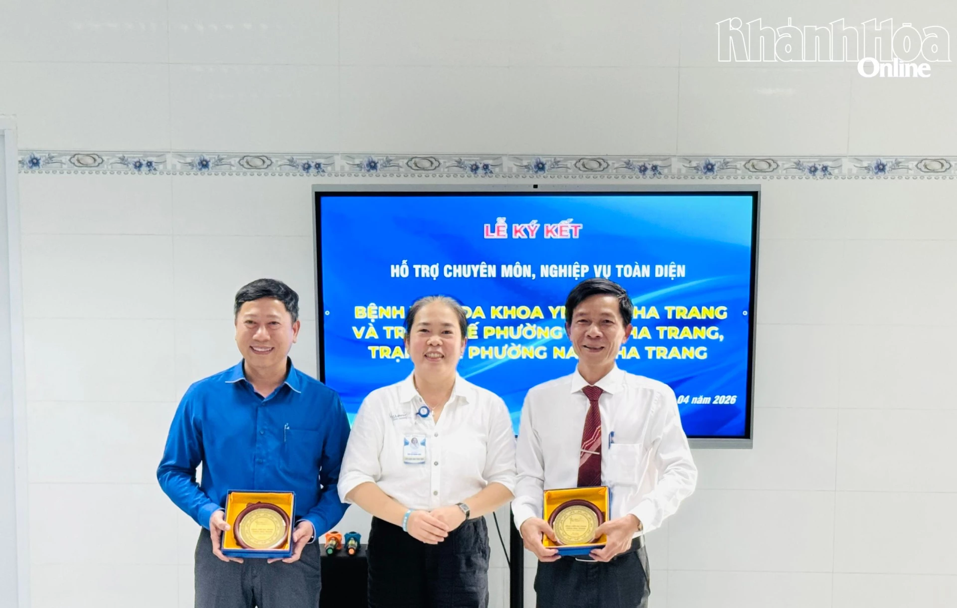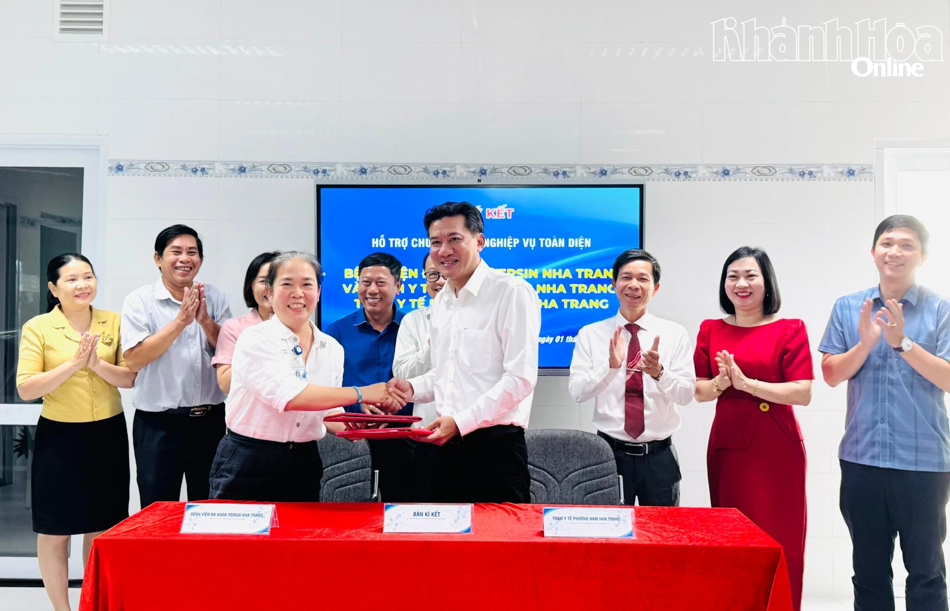 Lãnh đạo Bệnh viện Đa khoa Yersin Nha Trang ký kết hỗ trợ chuyên môn cho Trạm Y tế phường Nam Nha Trang.