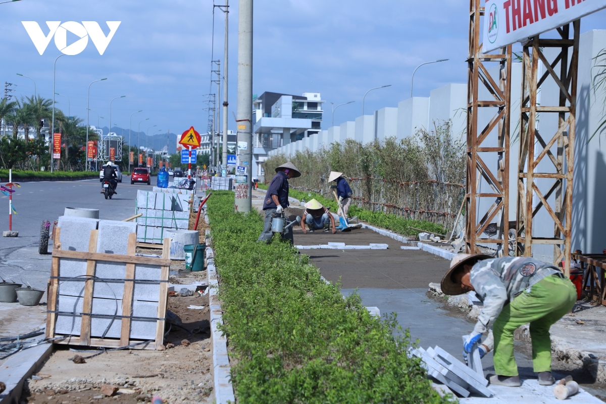 Bên ngoài, công nhân đang khẩn trương thực hiện các hạng mục lát hè, hoàn thiện cảnh quan và hạ tầng quanh Bệnh viện Việt Đức cơ sở 2.