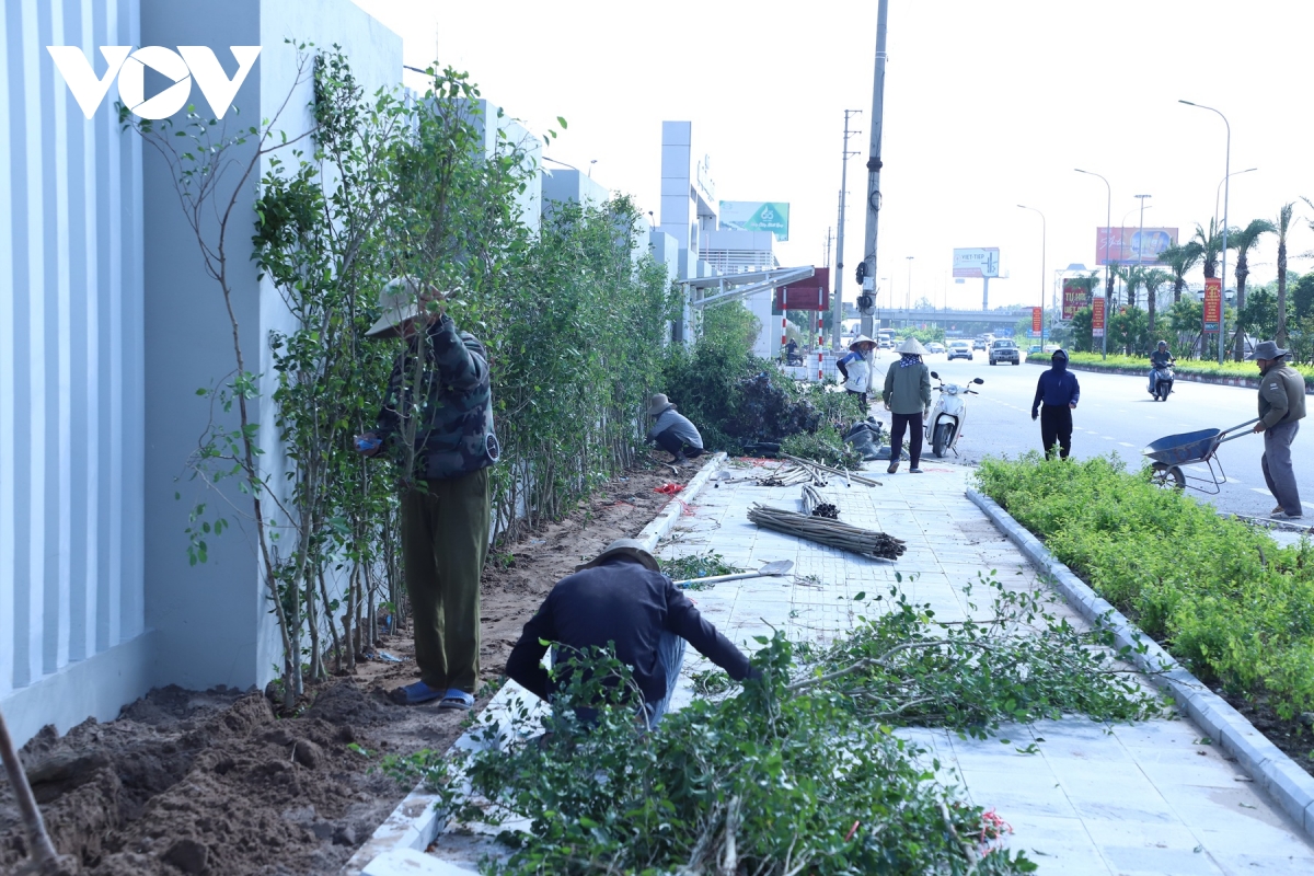 Khuôn viên bên trong Bệnh viện Việt Đức cơ sở 2 các hạng mục cây xanh, đường, vỉa hè và công trình phụ trợ đang được gấp rút hoàn thiện, chuẩn bị đưa vào hoạt động.