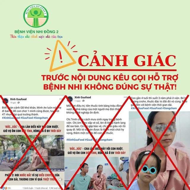 Ngày 1/10, Bệnh viện Nhi Đồng 2 (TP.HCM) phát đi cảnh báo về việc một số đối tượng lợi dụng bệnh nhi để kêu gọi quyên góp trái phép trên mạng xã hội.