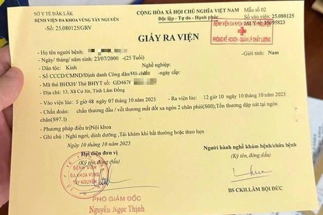 Cụ thể, vào chiều 13/10, anh H. đăng tải đoạn clip phản ánh nghi ngờ việc chẩn đoán, điều trị của Bệnh viện Đa khoa vùng Tây Nguyên đối với em trai. Theo đó, anh Đ. bị tai nạn giao thông và được đưa vào cấp cứu lúc 5h48 ngày 7/10 trong tình trạng chấn thương vùng đầu, xương hàm mặt và ngón chân phải.