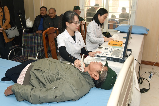 Thực hiện siêu âm tuyến giáp cho thương binh.